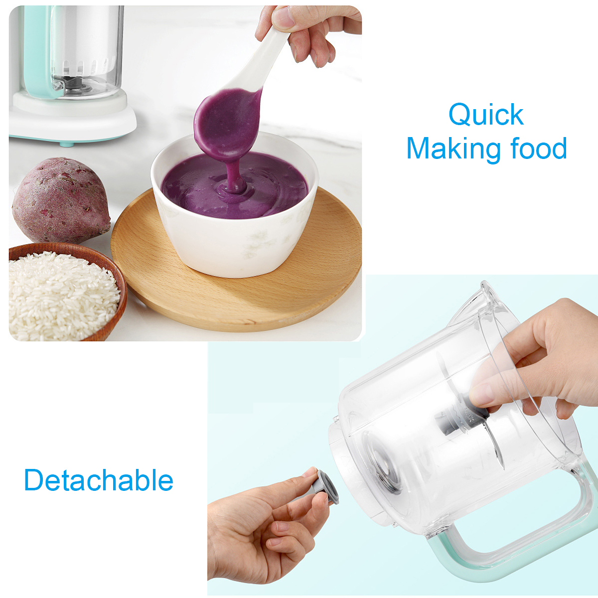 -Улучшенная точность и быстрая подготовка. Нажмите кнопку для удобного, быстрого измельчения/пюре из фруктов, орехов, овощей. Пульс заземляется каждые 5 секунд. В течение 3 туров вы получите вкусный суп.