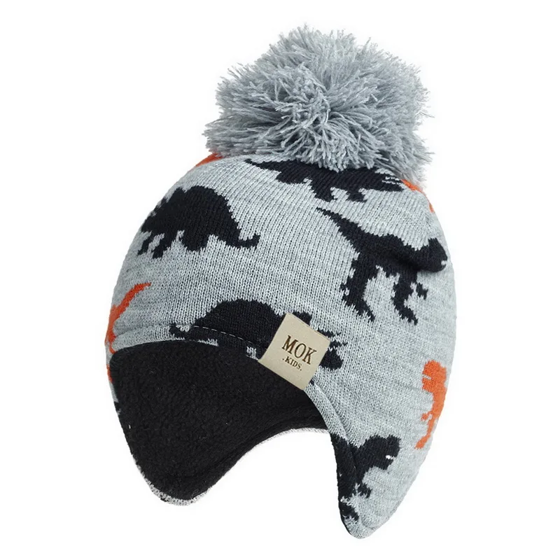 2020 детская вязаная шапка с помпоном, новые осенние и зимние жаккардовые шапки с ушками динозавра для мальчиков и девочек, детская шерстяная шапка H244S