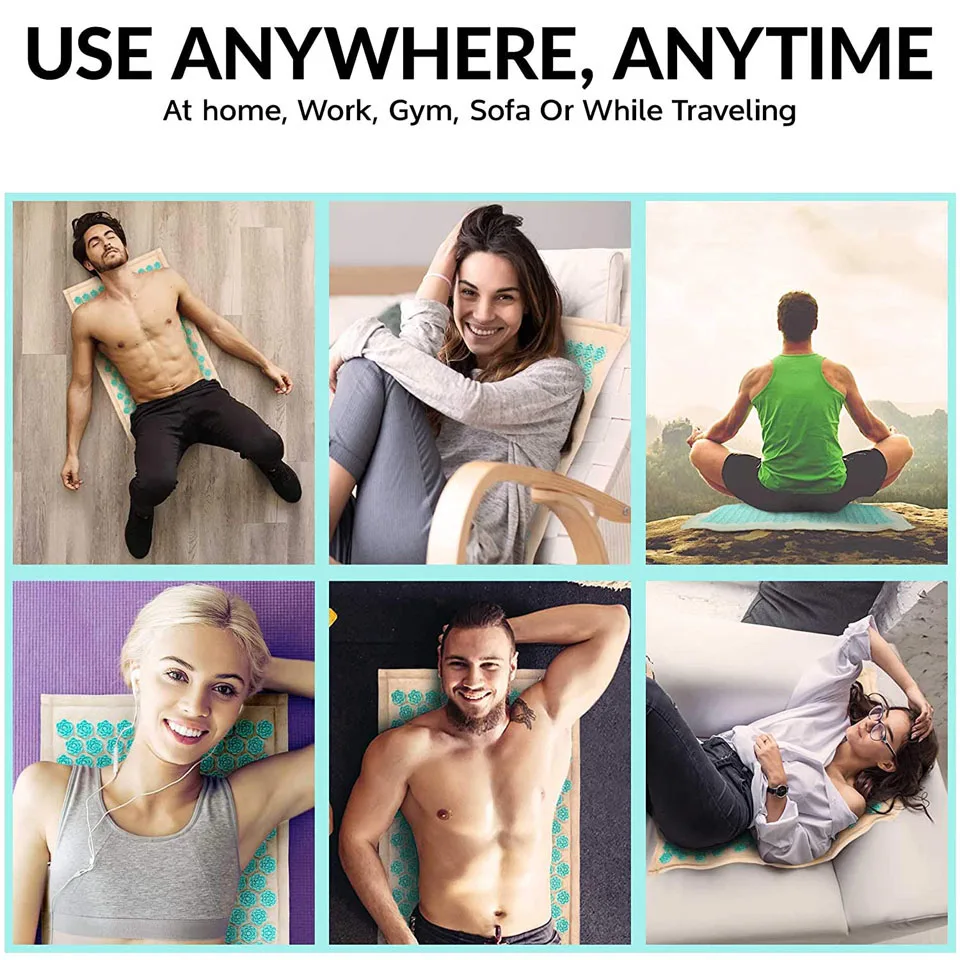 Что такое акупрессуровый Мат? Состоит из тонкого коврика, покрытого шипами из АБС-пластика. Он вдохновлен древними индийскими традициями исцеления, которые, как считается, были вокруг в течение тысяч лет. Тысячи шипов, которые были стратегически размещены на коврике и подушке, безвредны для кожи и обеспечат вашему телу целебные преимущества. Как это работает? Акупрессуровый коврик является идеальным помощником для самостоятельного лечения. Он работает таким же образом, как акупунктура, обеспечивая релиз эндорфинов вашего тела, которые обладают способностью производить анальгезию и ощущение самочувствия. Многие люди имеют различные реакции на это, которые могут включать в себя: счастье, ясный ум, больше энергии и расслабление. При регулярном использовании в течение достаточно длительного периода времени набор для акупрессуры может:-повысить уровень энергии-улучшить кровообращение-уменьшить стресс-облегчить боль в шее и спине-уменьшить кровяное давление-облегчить головные боли-улучшить сон. Как использовать? Поместите коврик на землю с шипами, указывающими вверх. Ложитесь на коврик. Коврик позволит Вам ориентироваться на изогнутые области, такие как шея, поясница и даже ноги. Предпочтительно делать это ежедневно в течение 10-30 минут одновременно или при желании. Для начинающих может быть лучше начать в течение более короткого периода времени и/или носить рубашку или поместить тонкую ткань между шипами и вашей кожей. Размер коврика около 74*44 см Размер подушки около 38*25 см Предупреждение: не подходит для детей до 5 лет. Инструкции по очистке: Только ручная стирка, используйте теплую воду и сушите. Примечание: Из-за разницы между различными мониторами изображение может не отражать фактический цвет изделия. Мы гарантируем, что модель реального изделия не отличается от представленной на фото.