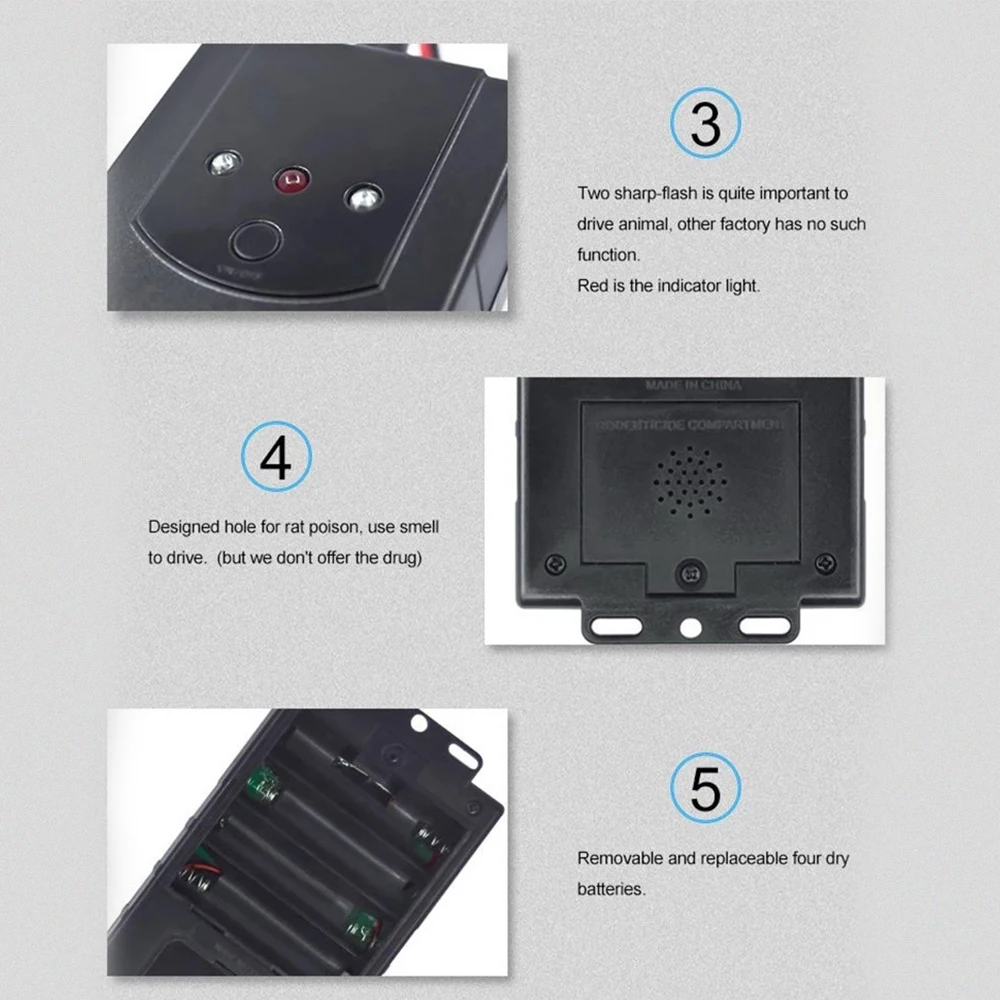 Ультразвуковой от крыс Отпугиватель для транспортного средства является эффективным и безопасным способом защиты вашего автомобиля от вредителей и грызунов, таких как крысы, тараканы, диапазон ультразвука 24-84 кГц продолжает меняться, чтобы избежать адаптации комаров к определенной частоте. Используйте этот Репеллент для вредителей в вашем доме, складах, офисе, саду, отеле, ресторане, кафе и т. д. и забудьте о вредителях.
