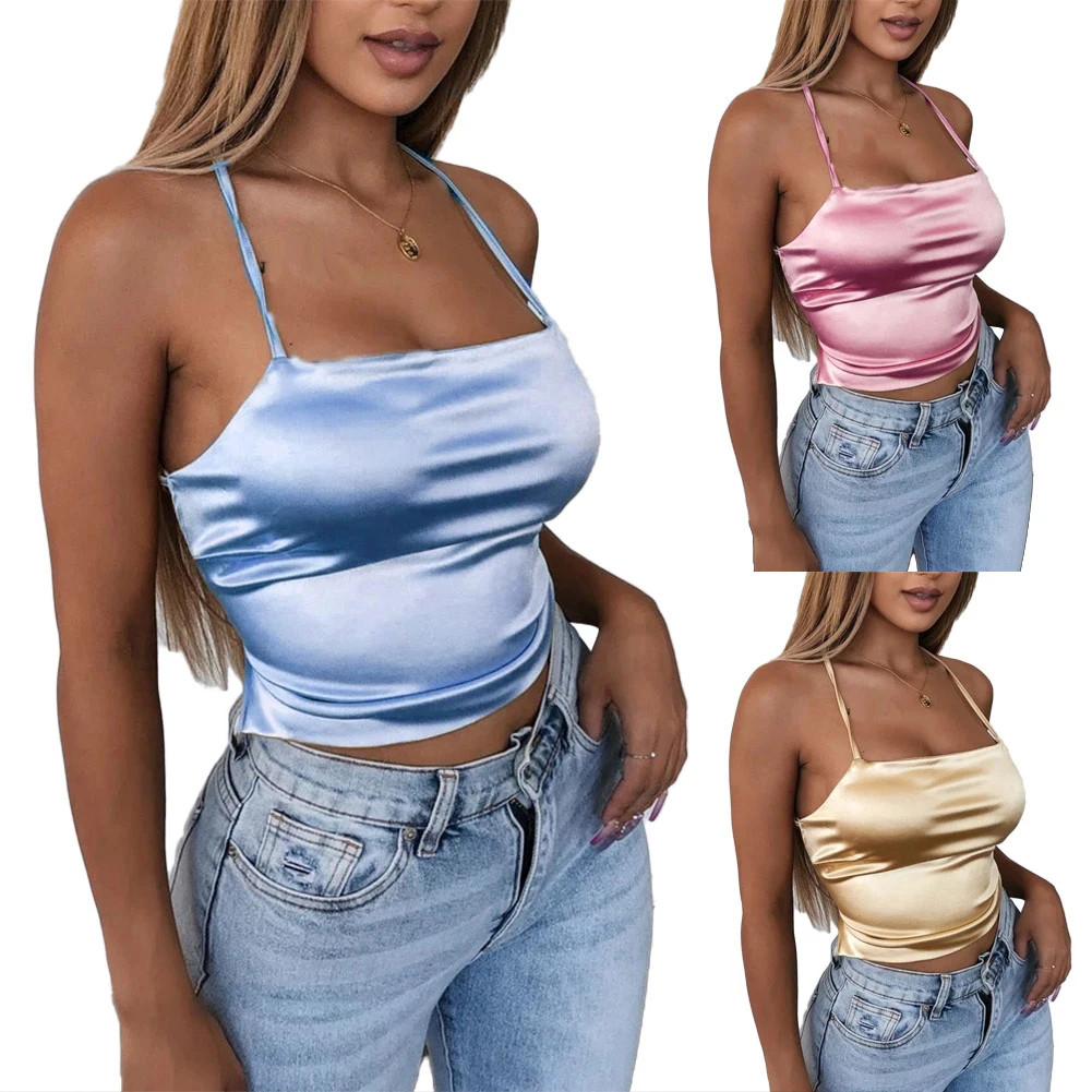 Женский сексуальный однотонный топ без рукавов с открытой спиной