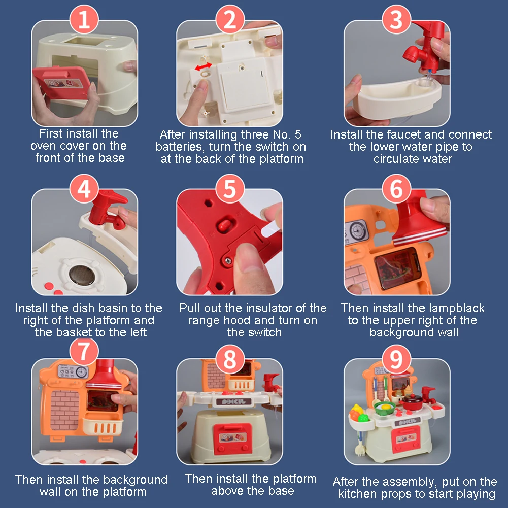 Этот набор кухонных игрушек включает в себя игровую плиту с реальными звуками, игровую раковину с водопроводной водой и 26 кухонных аксессуаров, которые могут увеличить удовольствие от переодевания.