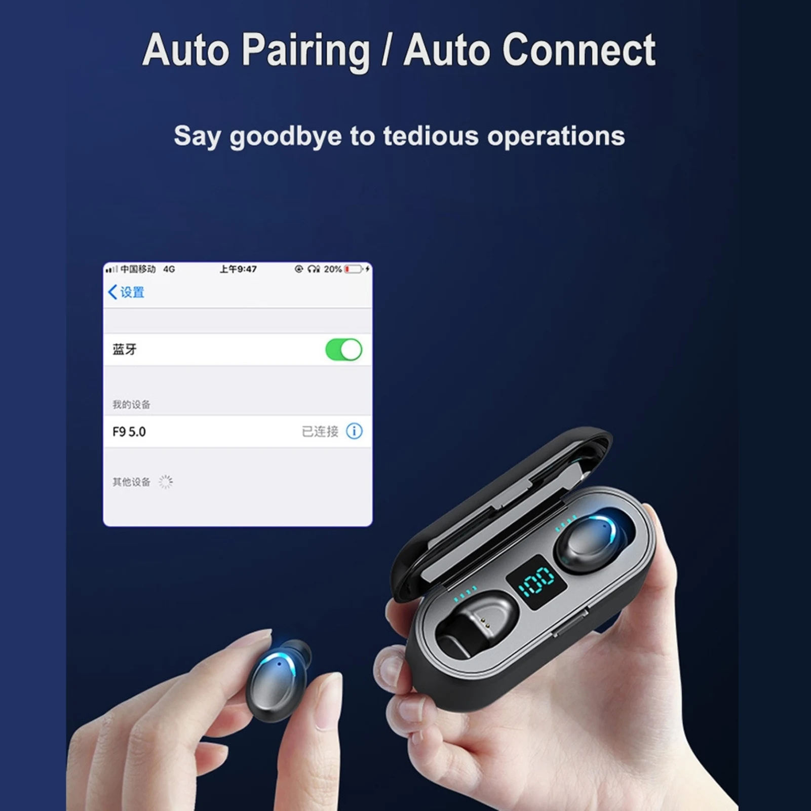 Беспроводные стереонаушники F9-5 TWS Bluetooth 5,0 Smart Touch 8D HiFi с тяжелыми басами