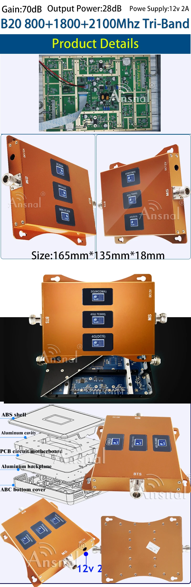 1 шт усилитель = Band20 800 + 1800 + 2100 МГц трехдиапазонный усилитель сигнала и источник питания;