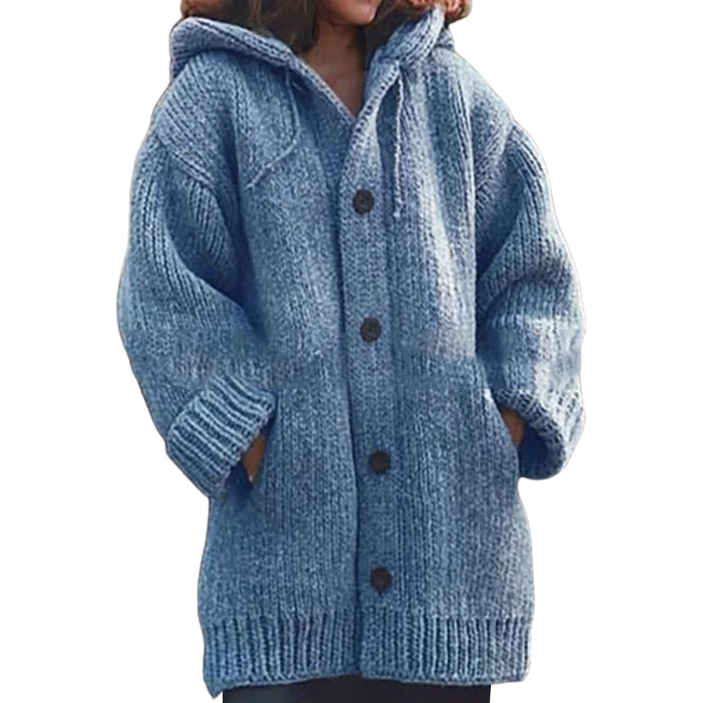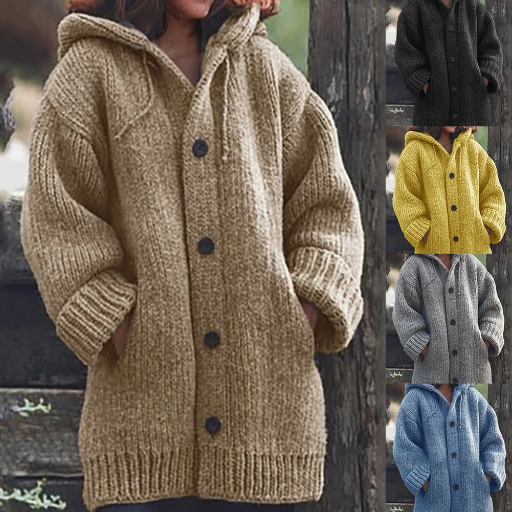 Женский толстый свитер, пальто, теплая вязаная верхняя одежда, осенне-зимний длинный кардиган с капюшоном