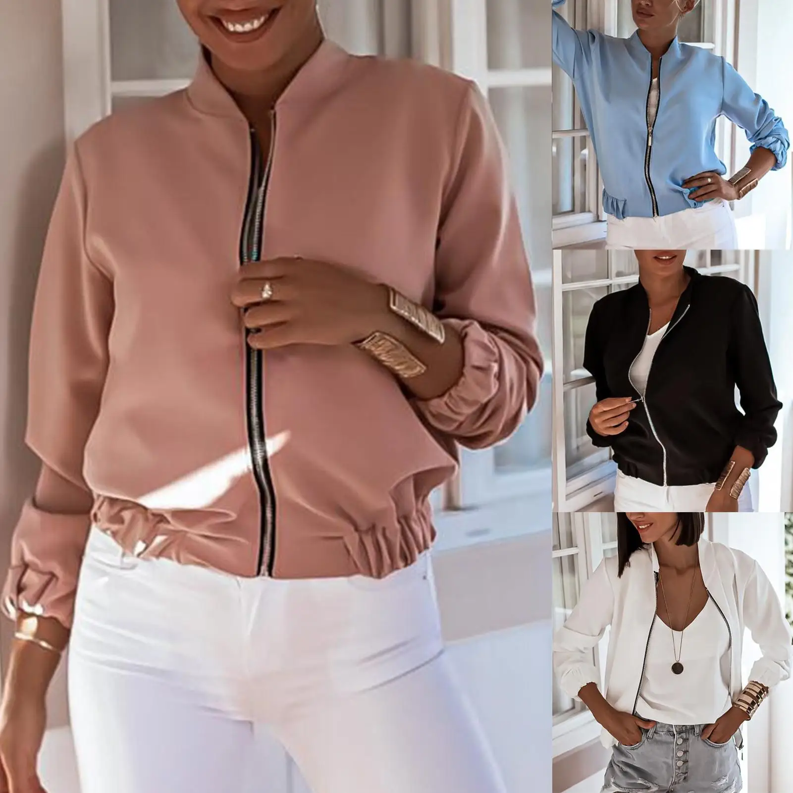 Женская осенне-зимняя однотонная университетская куртка-бомбер, тонкая верхняя одежда на молнии, пальто
