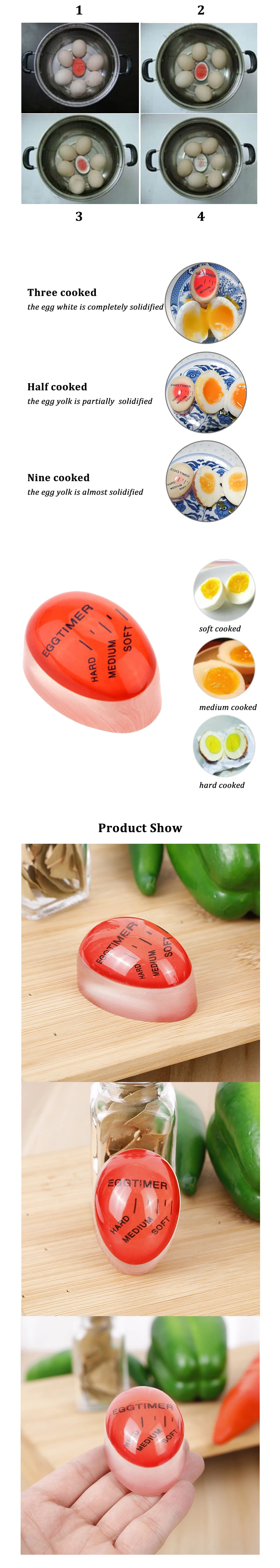 Как использовать:Положите таймер Яйца с яйцами в воду одновременно и погрузите яйца в воду. Затем мы можем узнать состояние яиц по мере изменения цвета таймера.