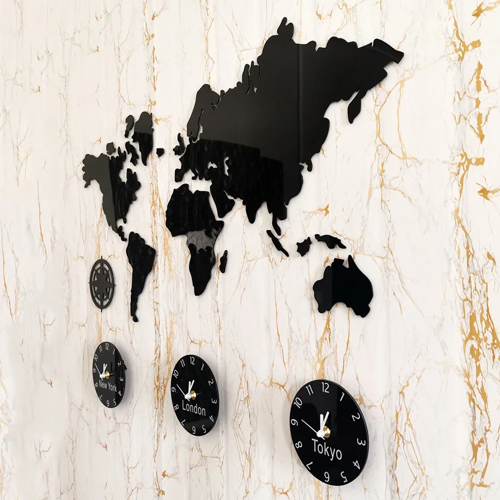 The Wall Clock World Map is an expressive piece that is mounted on the wall and allows your apartment to develop a unique style. The following three clock customers can support adding their own names.