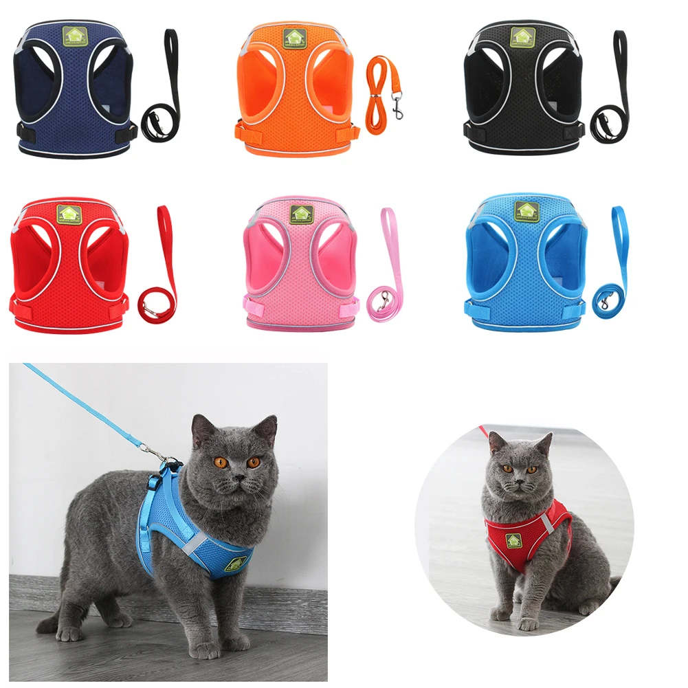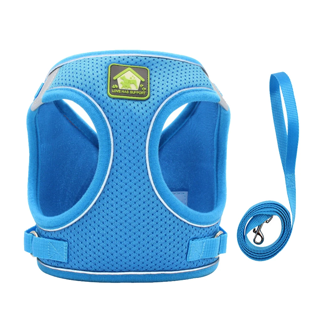 Нейлоновый сетчатый жилет для щенков, кошек, Светоотражающий поводок и поводок для собак, набор для чихуахуа, мопса, Средний Поводок для ходьбы
