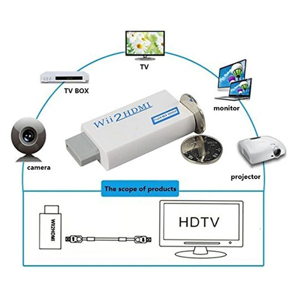 Small in Size: Wii to HDMI Adapter with size of 4 x 3 x 1.5cm,as small as a Zippo, is small but powerful. It does not occupy any space on your table by hooking up the back of Wii. No more tangling cords, just one cable.