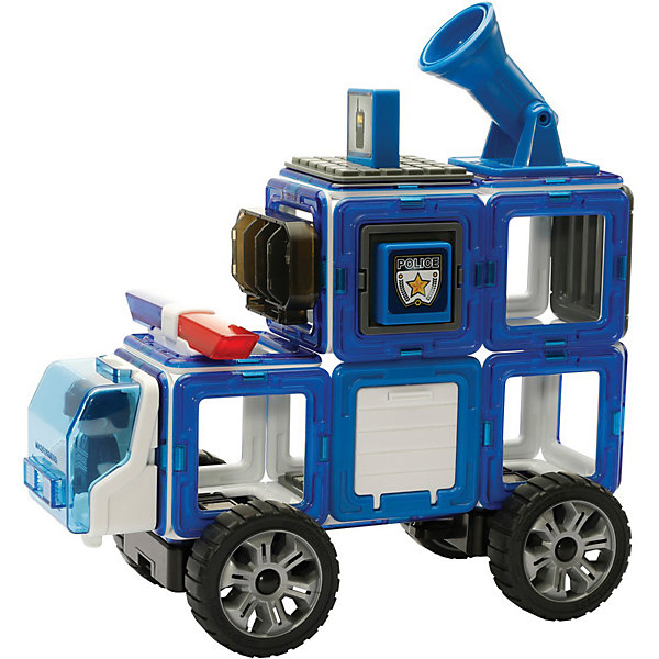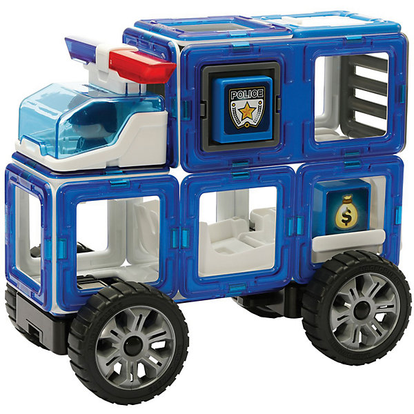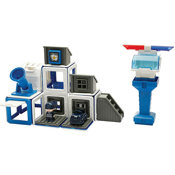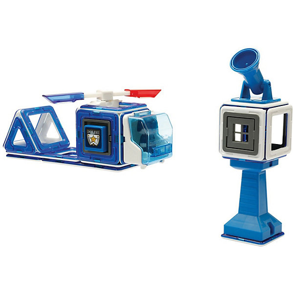 Помимо стандартных деталей квадратной и треугольной формы в набор включены элементы для строительства зданий, машин и другого транспорта полиции – всего 20 моделей. Конструктор выполнен в едином стиле и одной цветовой гамме. У построек есть подвижные части, в автомобили и тюремные камеры можно помещать фигурки человечков. Элементы надежно крепятся между собой, но при этом без усилий отсоединяются. Неодимовые магниты являются самыми сильными из всех, а внутри деталей расположены так, что легко поворачиваются нужной стороной друг к другу. Играя с конструктором, ребенок развивает пространственное мышление, воображение, ловкость рук и логику. Сделано из качественных материалов.