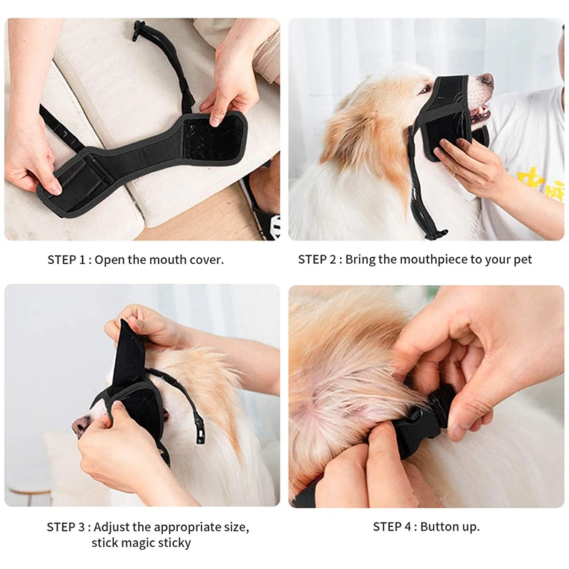 Регулируемый размер ---Конструкция на липучке позволяет отрегулировать мордочку собаки до наиболее подходящего размера в зависимости от формы рта собаки. И регулируемая петля, соединяющая воротник, помогает надежно удерживать мордочку на месте, обеспечивает плотное прилегание и защиту от скольжения.