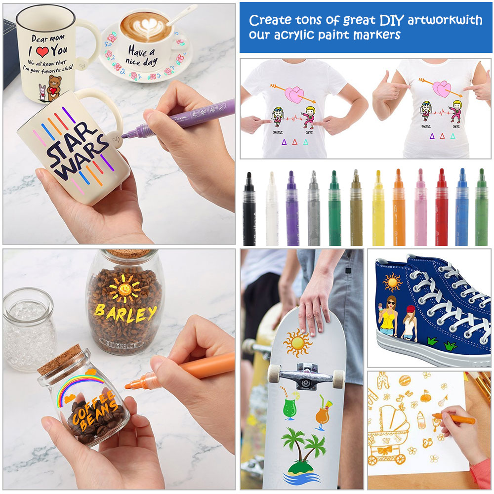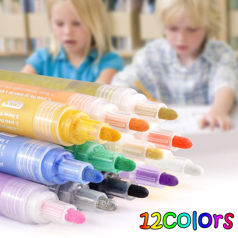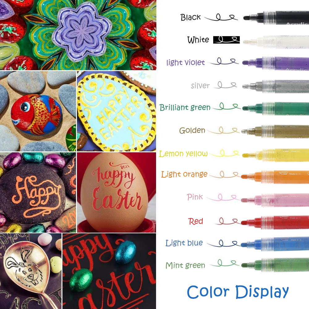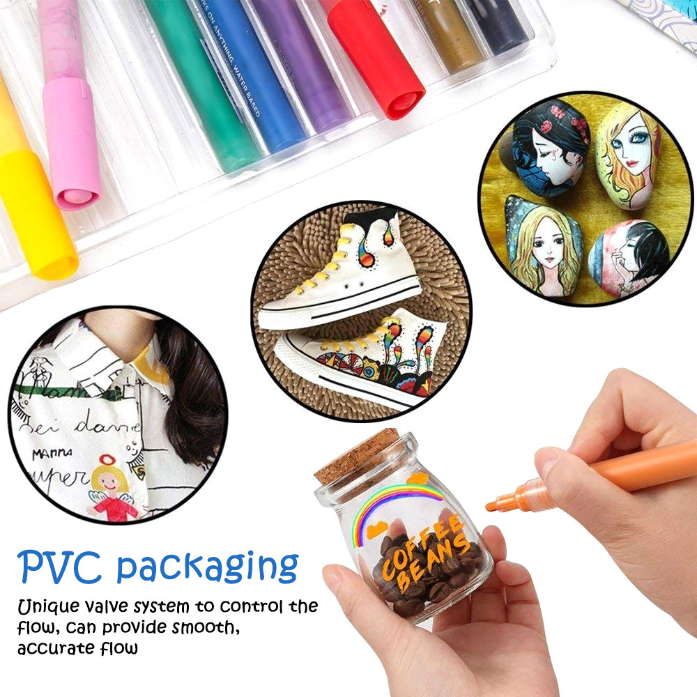 1. Высокое качество: Эти 12 акриловых красок сделаны из высокой пигментной акриловой краски, поэтому она будет более водонепроницаемой и не будет выцветать и носить. Быстро сохнет и производит очень прочное Непрозрачное и глянцевое покрытие на большинстве поверхностей. Эти ручки для краски безопасны и нетоксичны, поэтому дети могут использовать их для рисования без каких-либо рисков