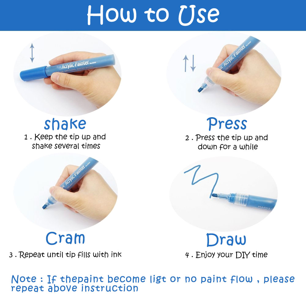 3. Уникальная система клапана для управления потоком: с уникальным техническим дизайном, этот средний рок-маркер имеет лучшую систему клапана насоса, которая может обеспечить плавный и точный поток. Вы можете легко понять оставшиеся чернила через прозрачный держатель ручки