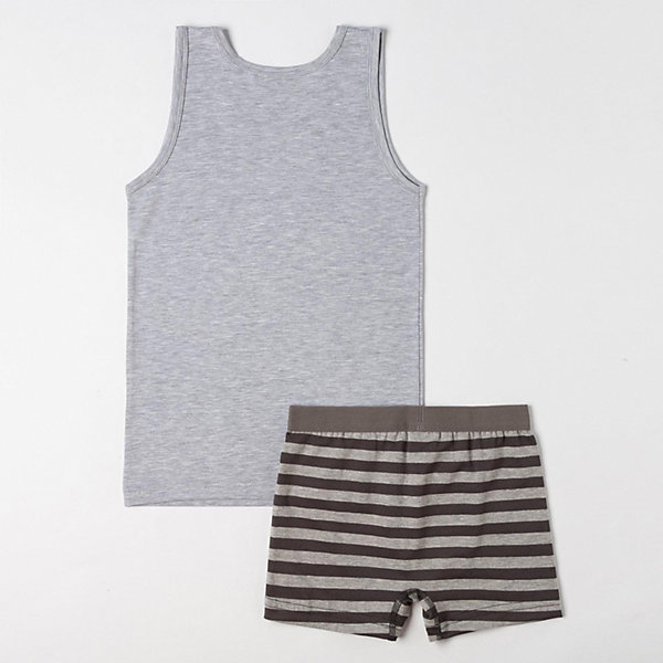Комплект белья изготовлен из натурального материала. Майка на широких бретелях с окантовкой по вырезу и проймам. Трусы выполнены в форме шортиков, пояс на эластичной резинке.