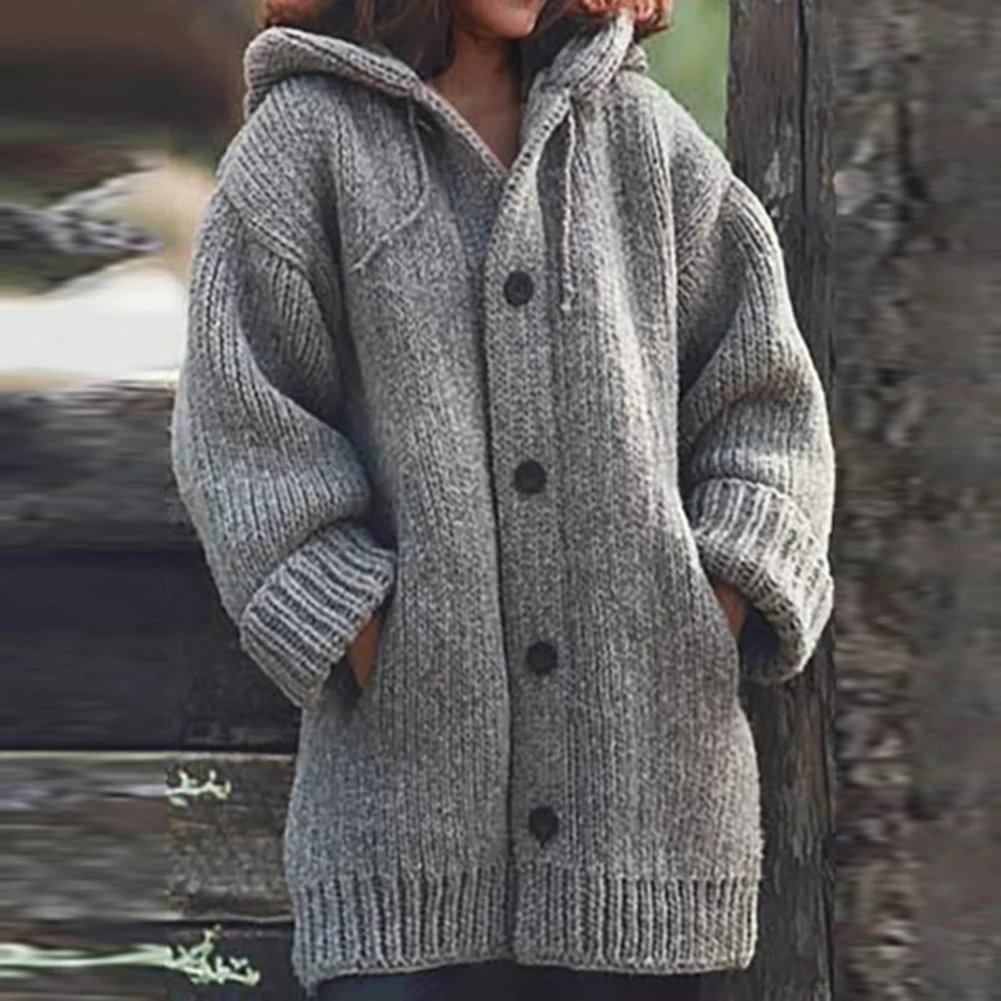 Женский толстый свитер, пальто, теплая вязаная верхняя одежда, осенне-зимний длинный кардиган с капюшоном
