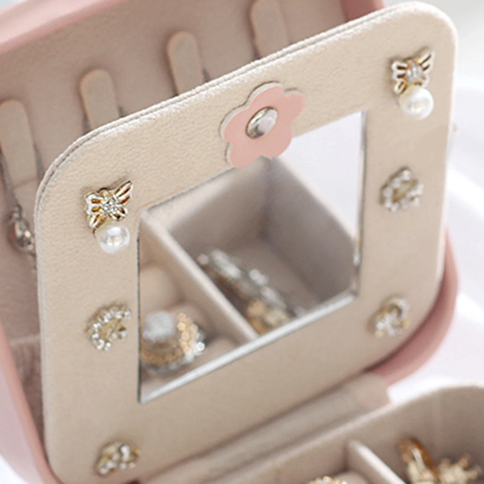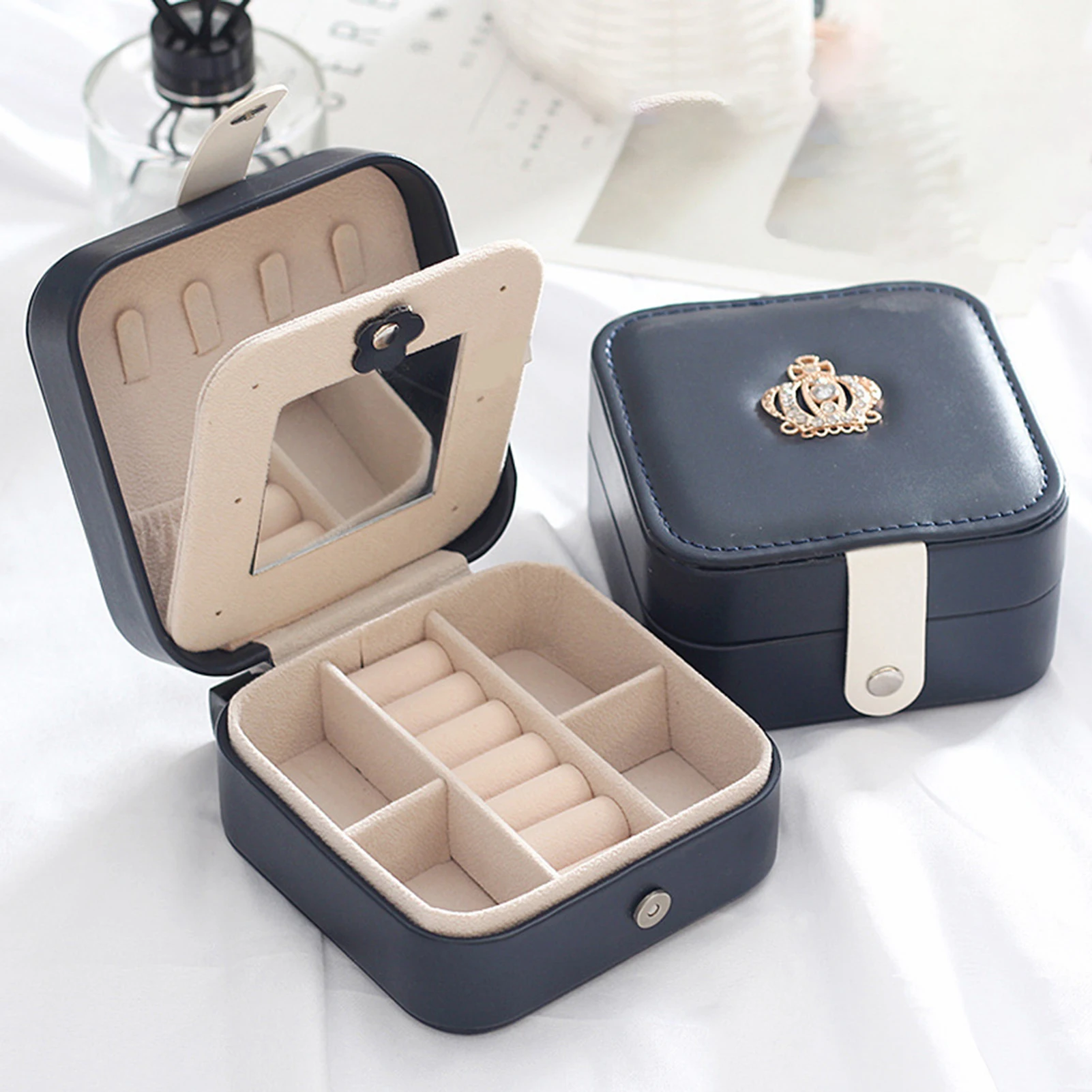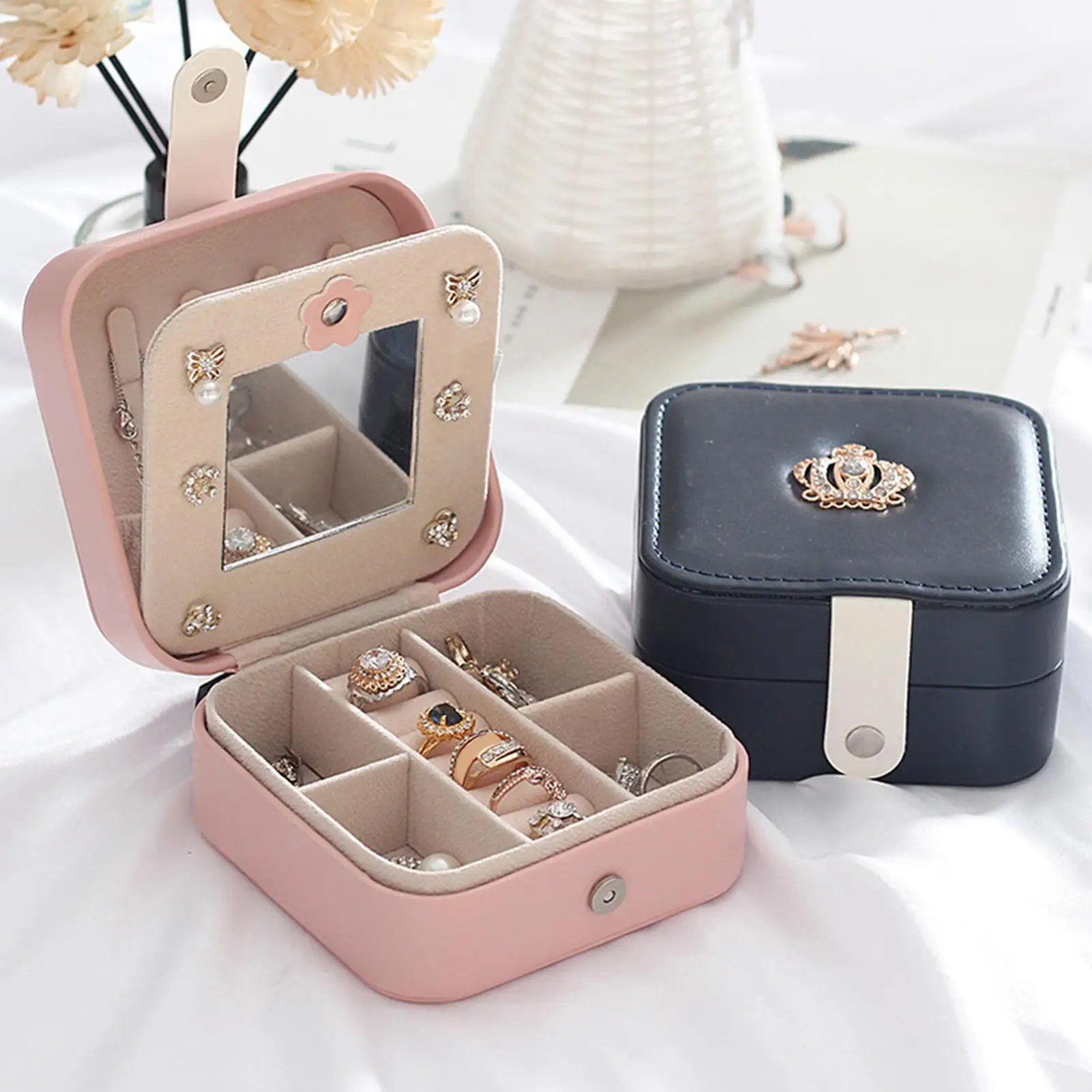 Портативная Магнитная кнопка путешествия ювелирные изделия серьги ящик для хранения колец с зеркалом
