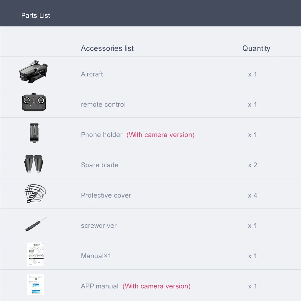 Описание:Номер товара. : T6Материал: АБС-пластик и электронные компонентыЦвет: черныйГироскоп: 6-axisЧастота: 2,4GКанал: 4CHДвигатель: 716 щеточный Бескаркасный двигательБатарея: 3,7 V 500MAH литий-полимерный Батарея (все указанные аккумуляторы входят в комплект поставки)Мощность передатчика: 3 аккумулятора AAA (не входят в комплект)Режим передатчика: режим 2 (левая дроссельная заслонка)Время полета: около 12 минутНизкая скорость полета: 2 м/сСредняя скорость полета: 4 м/сВысокая скорость полета: 7 м/сВремя зарядки: 60 минутДистанция RC: 80-100 мРасстояние FPV: 15-30 мFPV: WiFiКамера: камера 1080P-5.0MP, камера 4K, двойная камера 4K/1080P (опционально)Разрешение: 500 Вт-1080P, 4KУгол камеры: регулируемый 180 °- 90 °Размер квадрокоптера: 18*15*4 см (в разложенном виде)8*5,5*4 см (в сложенном виде)Вес посылка: 280 гРазмер посылка (сумка для хранения): 21,5х11х7 смОсобенности:-Складные руки, маленький размер всего 8 см, легко носить с собой.-С функцией режима удержания высоты, полет стабильный.-В безголовом режиме нет необходимости регулировать положение самолета перед полетом.-Одно нажатие: Взлет/посадка/возврат. Легко найти свой путь домой с помощью функции задней панели с одной кнопкой.-Встроенная hd-камера 500 Вт pixel /4K pixel. Удивительно, но он может снимать Потрясающие фотографии и видео с неба.-Переключатель двойной камеры, избавьтесь от фиксированного угла обзора.-С функцией Wi-Fi, он может быть подключен к приложениям, системе APK, и делать фотографии, видео и передачу в реальном времени через мобильный телефон изображения камеры.-Нарисуйте траекторию полета на экране, Дрон будет летать автономно по указанному пути.-VR 3D опыт. Через мобильное приложение с очками VR вы можете почувствовать пустоту с точки зрения.-Производство мВ, музыкальное дополнение.-3,7 V 500 мА/ч, модульная батарея, просты в установке и взять, время работы от аккумулятора до 12 минут.-2,4 ГГц технологии анти-помех.-4 канала для подъема, спуска, вперед, назад, левого полета, правого полета и 360 ° рулона.-Шестиосевой гироскоп, плавный полет и более удобное управление.-Светодиодный светильник делает полет более эффектным, особенно в темноте.Функции: вверх/вниз, вперед/назад, влево/вправо, боковой F светильник, светодиодный светильник, Безголовый режим, автоматическая кнопка возврата, режим удержания высоты, Поворот на 360 °, wiFi FPVПосылка включает в себя:1 Радиоуправляемый Дрон1 пульт дистанционного управления1x3,7 V 650 мА/ч, Батарея1 х USB кабель для зарядки2 запасных лезвия4 x защитный чехол1 x держатель для телефона1 отвертка1 х Руководство1 х сумка для хранения
