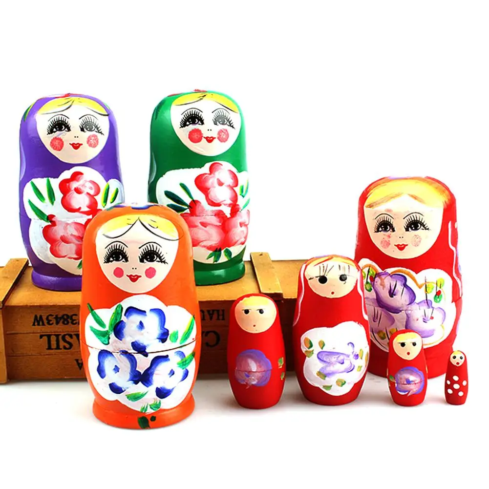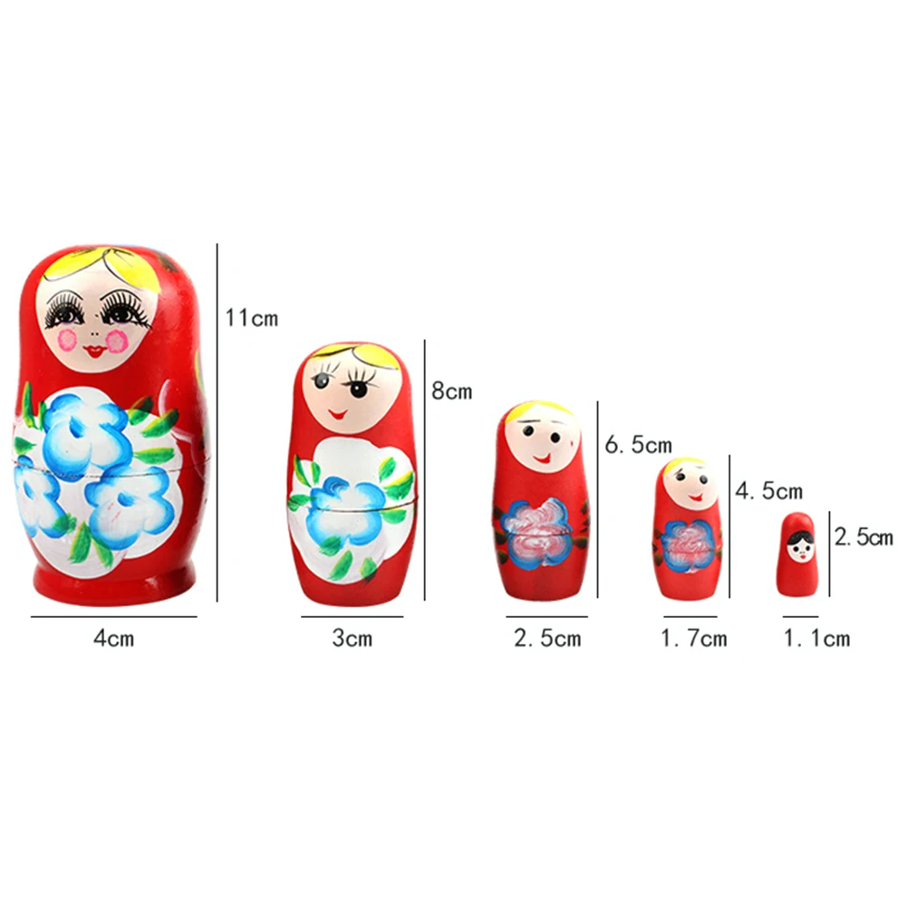 5pcs Novelty Russian Nesting Wooden Matryoshka Doll Set Hand Painted Decor Russian Nesting Dolls Baby Toy Girl Doll