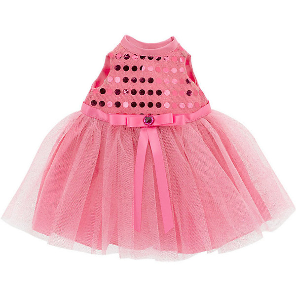 Комплект одежды состоит из очаровательного розового платья с блестками и аксессуара в виде бантика. Комплект предназначен для мягких игрушек серии Lucky Doggy.