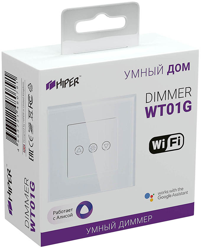 HIPER IoT Dimmer WT01G представляет собой умный выключатель с сенсорной клавишей, который позволит управлять освещением как при помощи касания, так и удаленно. Модель использует интерфейс Wi-Fi и поддерживает голосовое управление. Выключатель может работать в режиме диммера и изменять яркость освещения подключенной к нему лампы или люстры.
