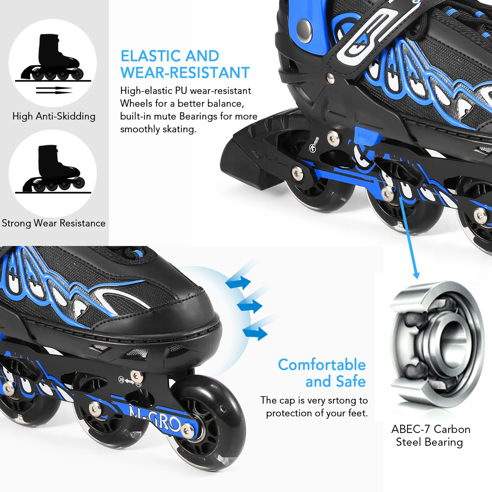 Высококачественные полиуретановые колеса и ABEC-7 подшипники, устойчивые к разрывам и прочные, отлично подходят как для внутренних, так и для наружных поверхностей.