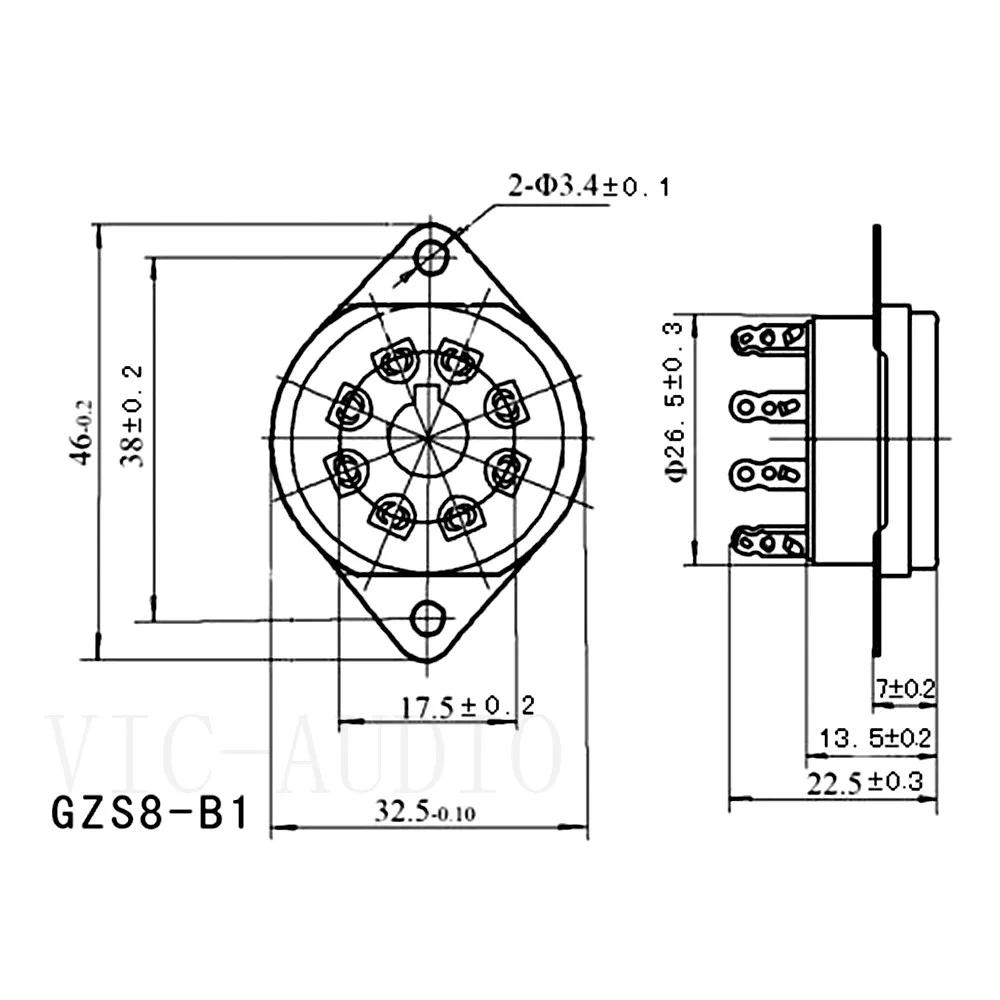 Количество: 10 шт./лот Материал: бакелит высокого качества Отделка поверхности: луженая, позолоченная Прикрепите к KT66 KT88 6SL7 6SN7 6V6 5AR4/GZ34 5R4GY 5U4G 6AS7G 6B4G 6BL7GT 6F6 6J5 6J7 6L6 6V6 6SJ7 274B 348A 350B 421A 5691 5692 5693 5881 6336 EL34 GZ32 gz3p 6p6p6n6p 6p6n6p 6S 5Z3P 5Z2P 6J8P 6N5P и др. GZS8-B/ GZS8-B-G Совершенно новый 8-контактный разъем Верхнее Крепление Шасси Вырез панели: 26,50 мм Расстояние между отверстиями для монтажного винта: 38 мм GZS8-B1/ GZS8-B1-G Совершенно новый 8-контактный разъем Нижнее Крепление Шасси Вырез панели: 26,50 мм Расстояние между отверстиями для монтажного винта: 38 мм