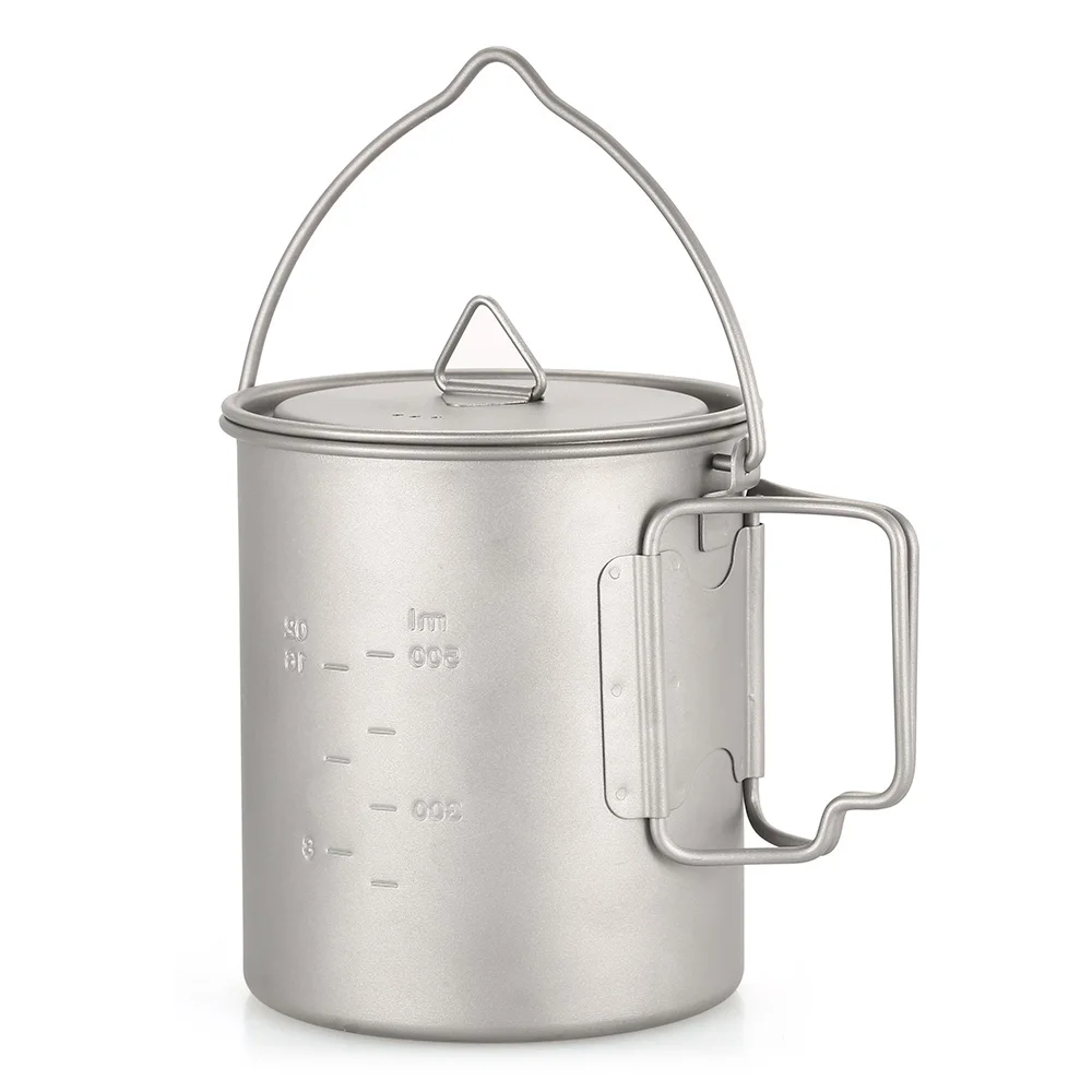 Набор из 3 предметов: полный титановый набор включает в себя кастрюлю объемом 750 мл, чашку объемом 450 мл и складную спортивную складку, отлично подходит для кемпинга, пеших прогулок, альпинизма, активного отдыха и выживания.