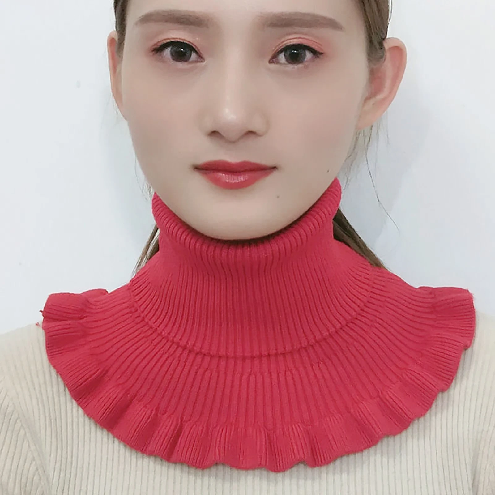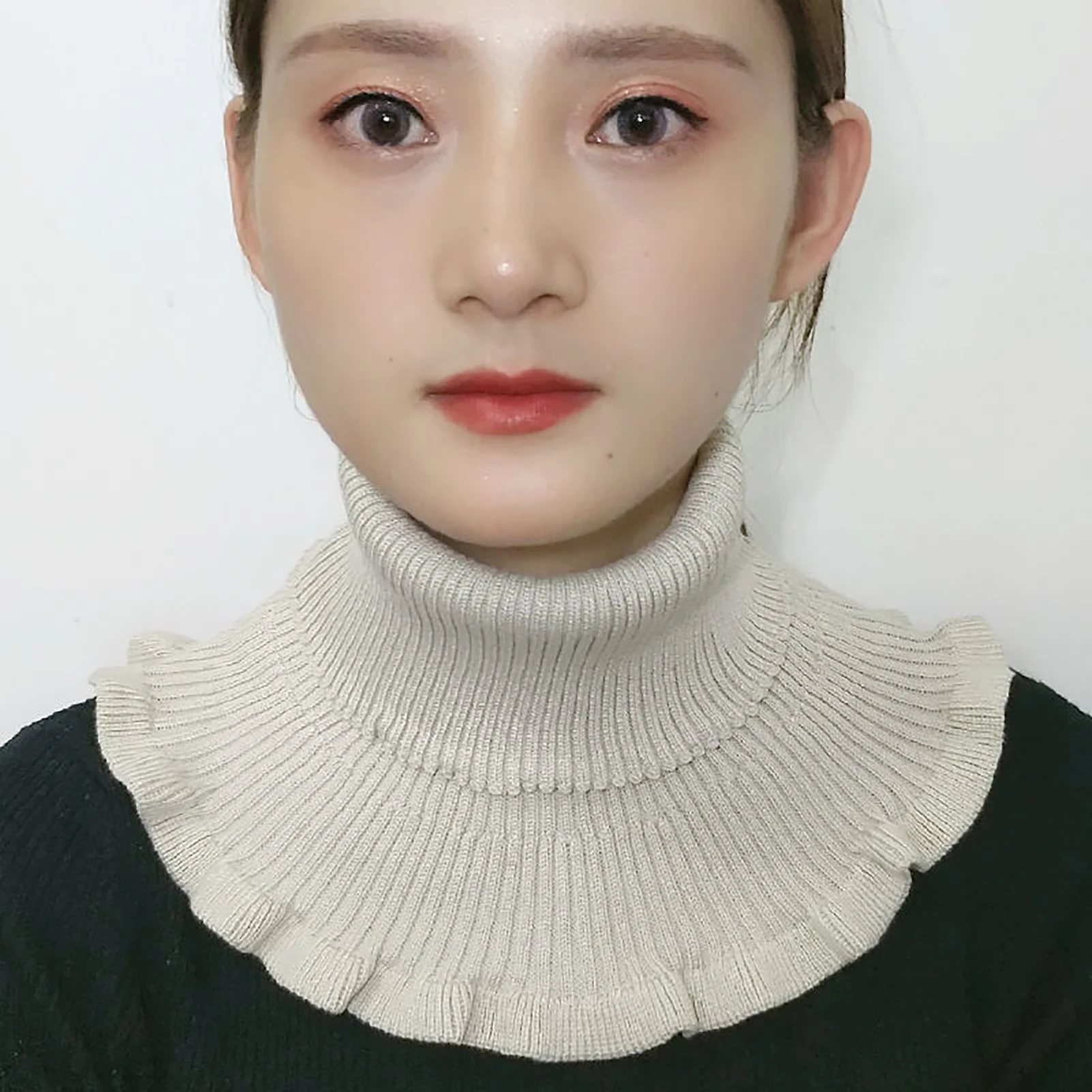 Женский зимний однотонный дышащий вязаный шарф с воротником-хомутом