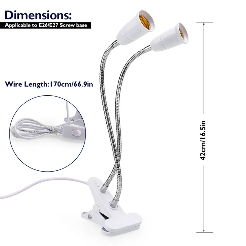 Основание: E27 винтовое основание с гибким держателем 360 градусов