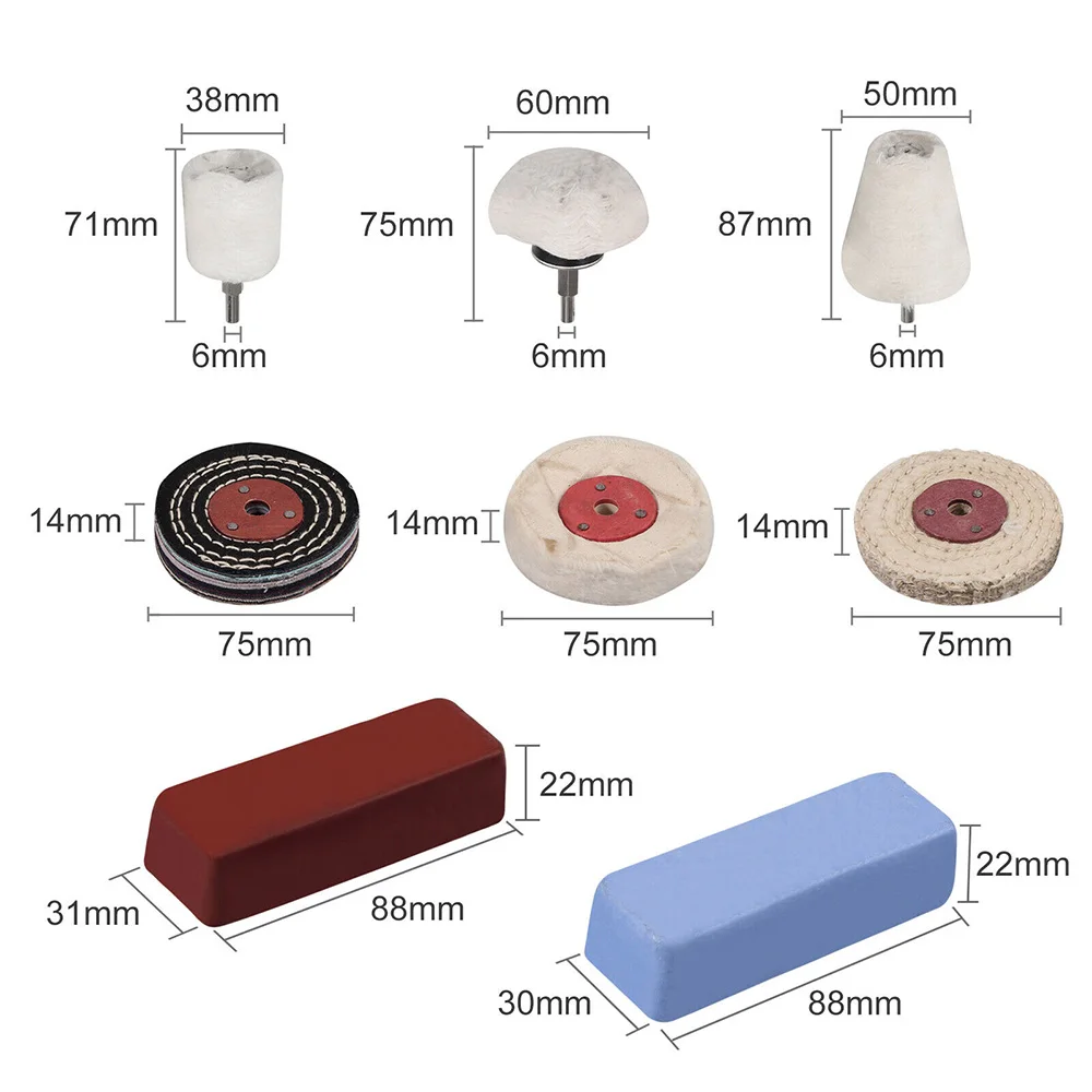 Набор может быть установлен на стандартной электрической дрели и оснащен серией высококачественных полировальных колес и полировальных агентов.