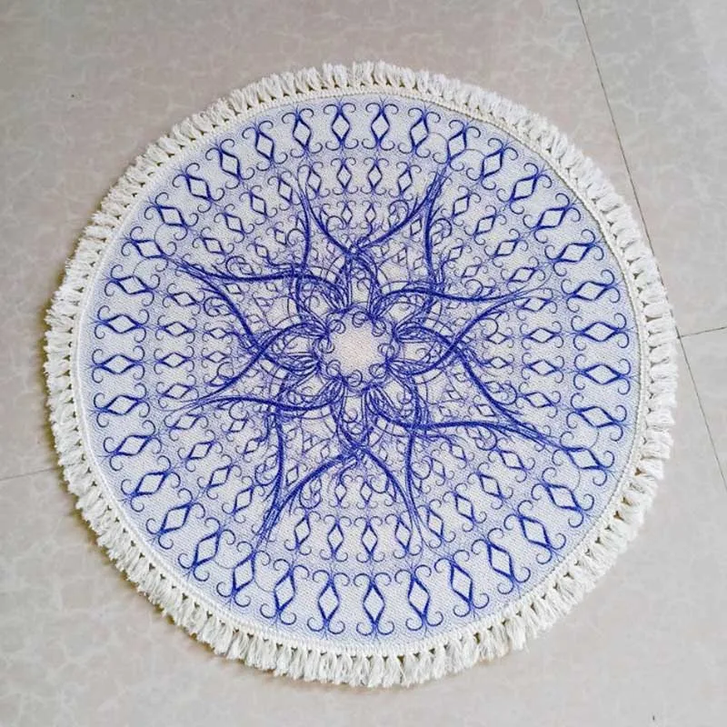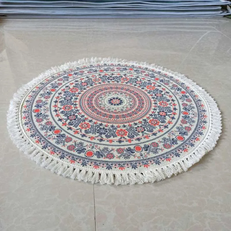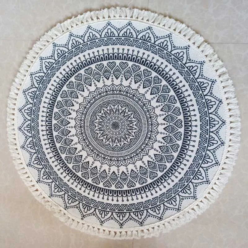 Nordic Round Carpet for Living Room Big Cotton Linen Boho Vintage Tassel Rugs Mandala Non Slip Floor Mat Modern Morocco Carpet