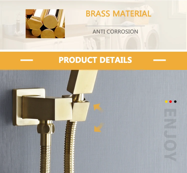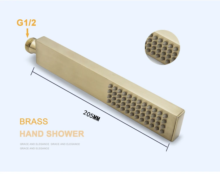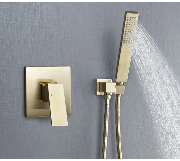 Латунный настенный душевой кран для ванной комнаты, набор, квадратная душевая головка, смеситель, ручная насадка для душа, щетка, золотые настенные смесители для ванной комнаты