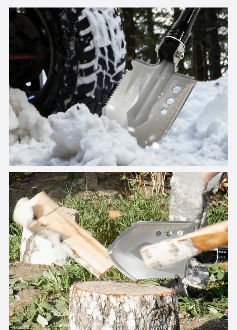 Наименование бренда: BSWolf Материал лопаты: Материал ручки: алюминиевый сплав Материал ножа: марганцевая сталь Общая длина: 76 см Лопата: 16,4*13 см Вес: около 0,95 кг