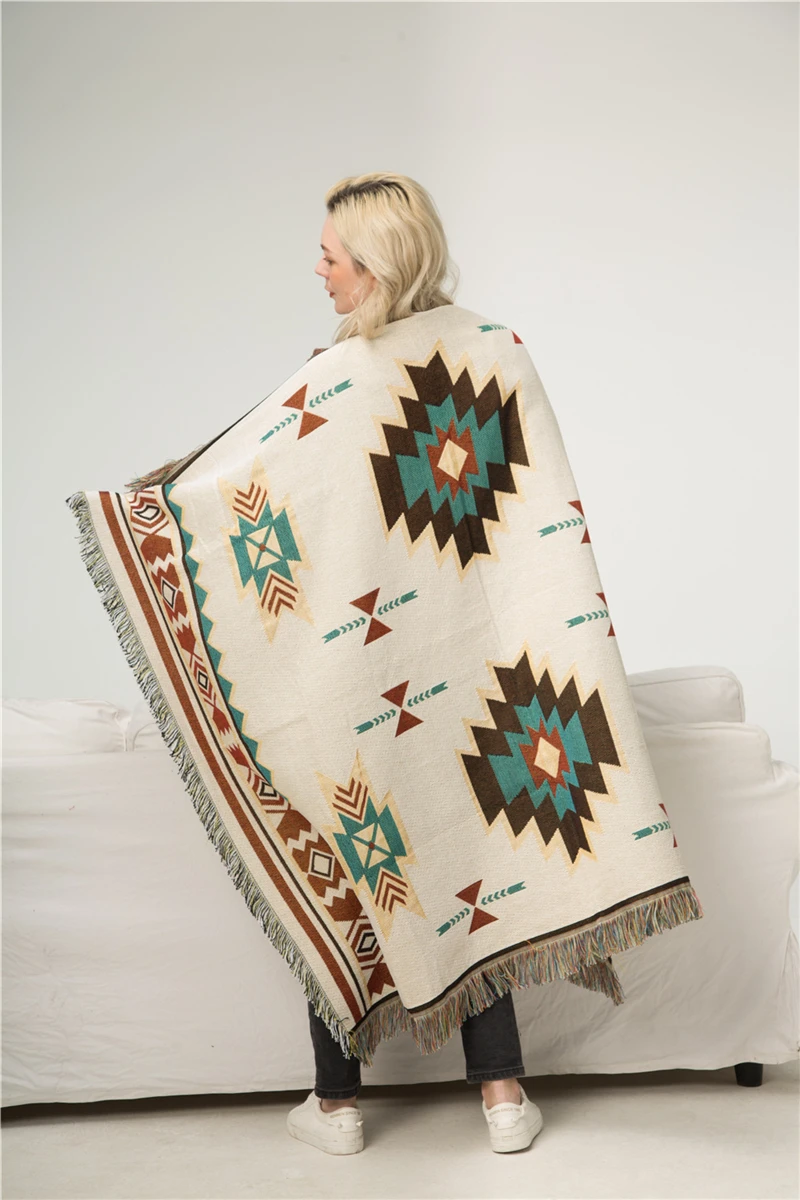 Плотный и толстый материал-Наши красивые ковры изготовлены из 40% хлопка и 60% полиэстера, что делает их прочными и долговечными. Они мягкие и нераздражающие, с хорошей воздухопроницаемостью, сохраняя ветер от вашей кожи в эти холодные ночи. Плотный тканый материал также позволяет использовать его в качестве коврика для пикника, защищая вас от песка, травы или колючек. Мы описываем их как толстые, как полотенце.С красивым узором-Этот коврик осветит любую комнату. Он также обратим, а задняя часть-разные оттенки синего и серого.Многофункциональный-Идеально подходит для пикников, пляжных дней, кемпинга, Ван жизни, интерьера, или сжигания тоже.