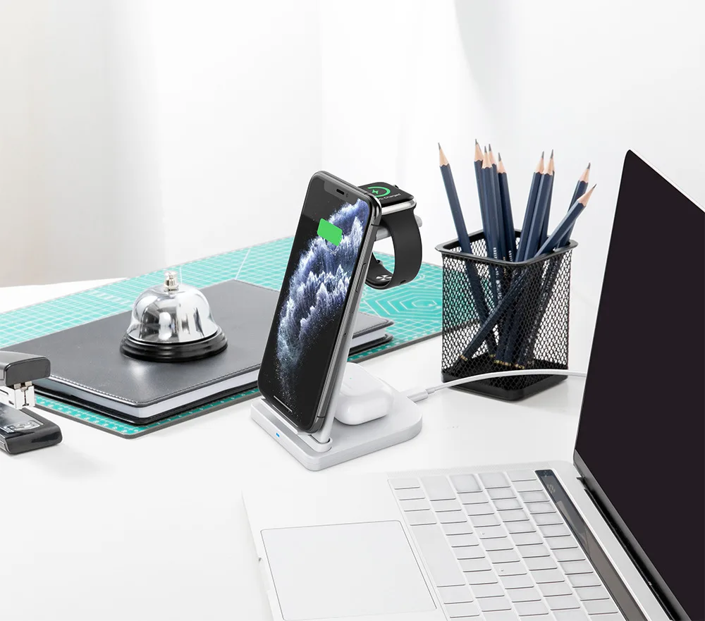 1 * Беспроводная подставка для зарядного устройства 3 в 1 для iPhone watch 1 * Руководство пользователя 1 * кабель для передачи данных типа C 1 * Адаптер QC 3,0 (если вы выбираете с опцией вилки)