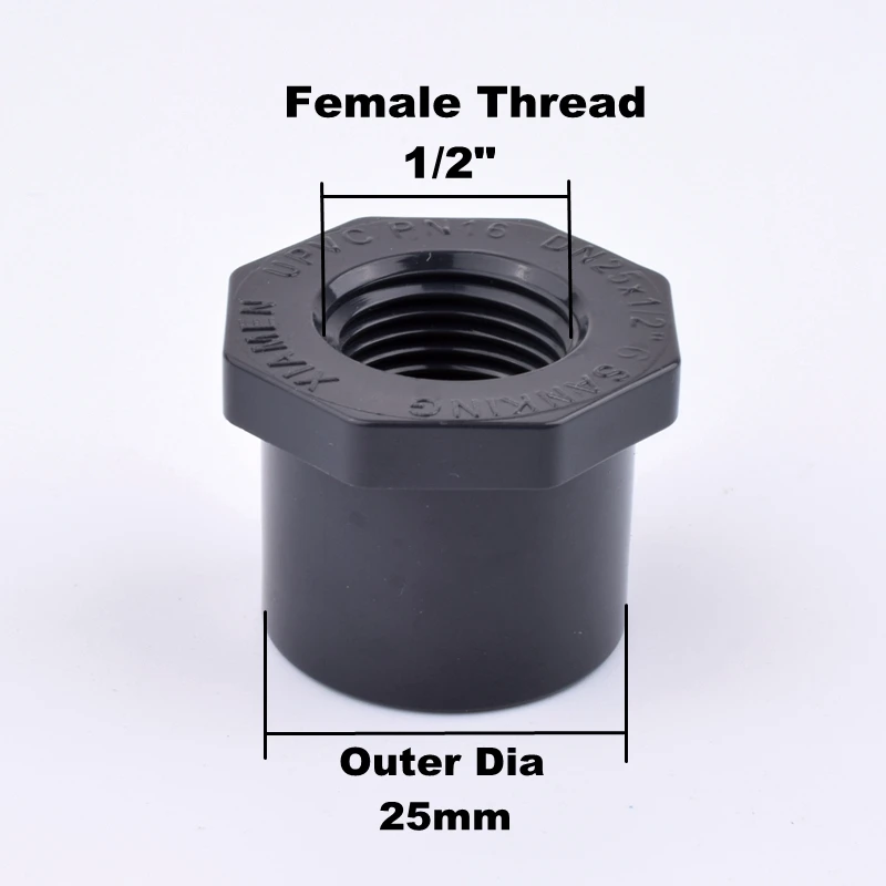 Страна происхождения: Китай (материк) Название продукта: UPVC дополняет сердечник женской нити Цвет: темно-серый Размер: 1/4 ''-20 мм, 1/2''-25 мм, 1/2 ''-32 мм, 3/4''-32 мм. Другие размеры доступны, пожалуйста, свяжитесь с нами, если вам нужно. Режим подключения: Используйте клей ПВХ для подключения Материал: ПВХ (экологический материал, безопасный и нетоксичный) 100% новый и высокое качество Применение: садовые, домашние, теплицы, полив газонов, полив аквариума, фитинги DIY и т. Д.