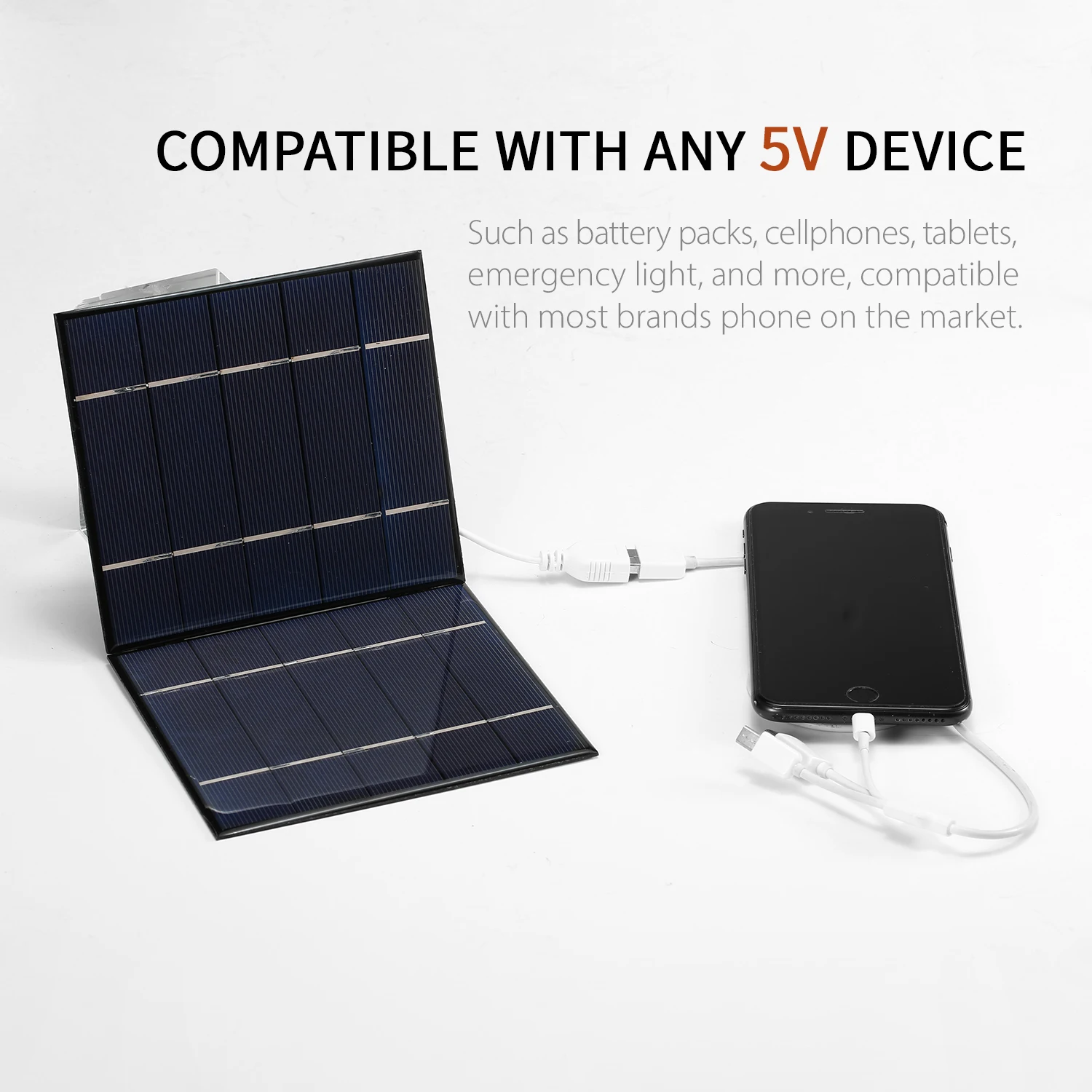 [Wide Compatibility]You can use this solar-powered charger for any 5V electronic device like battery packs, cellphones, tablets, emergency light, and more, compatible with most brands phone on the market.