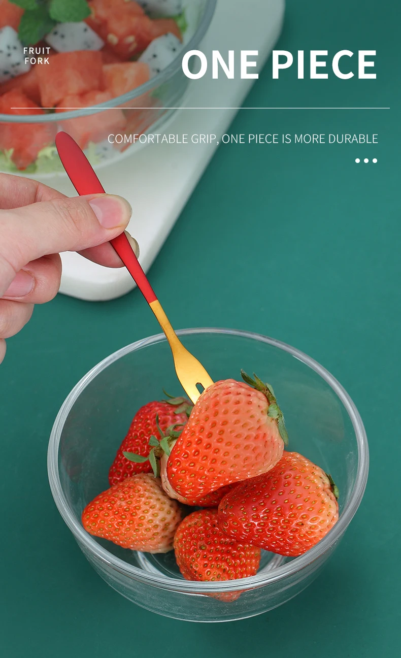1. Набор красочных золотых вилок для фруктов. Доступны разные цвета и комбинации.