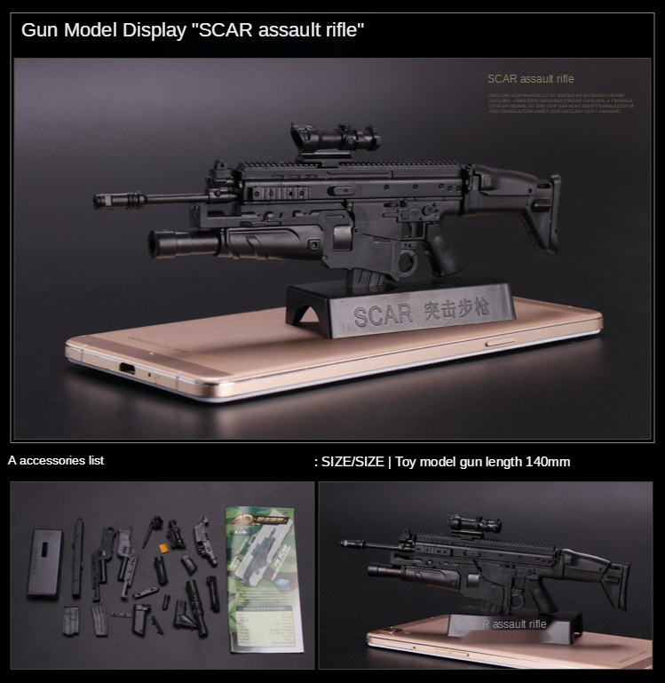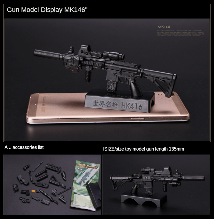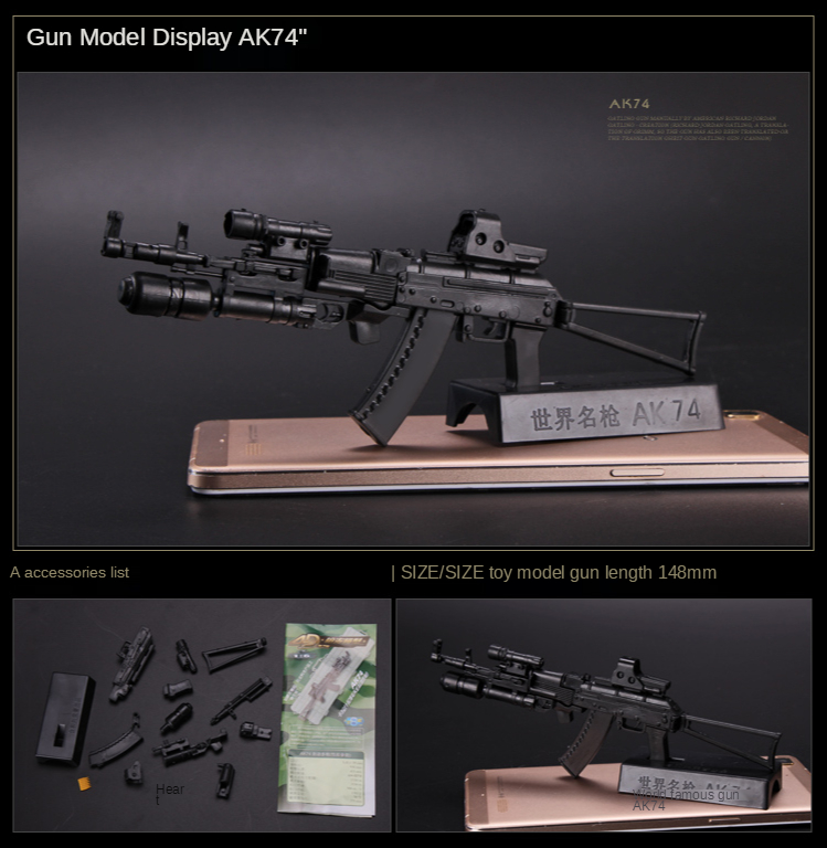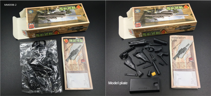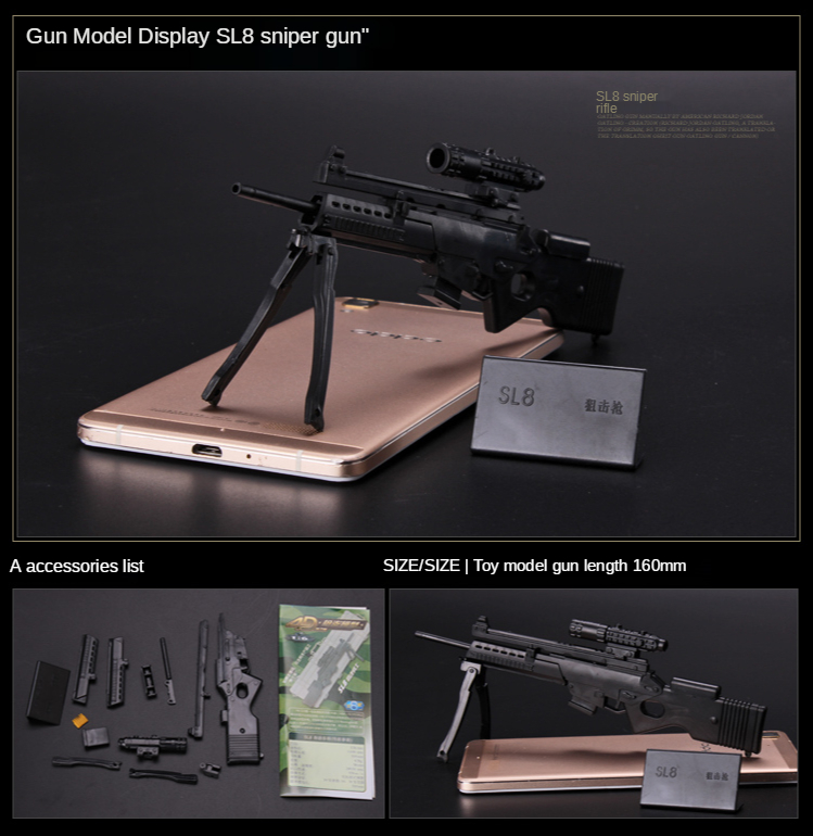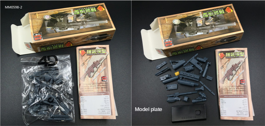 Соотношение моделей 1:6, длина пистолета составляет около 185, разные стили и размеры немного отличаются от пластика, быстрая сборка, клей не требуется для сборки, некоторые стили болтов могут имитировать вытягивание статической модели, а не стрельбу, только для демонстрации и сбора