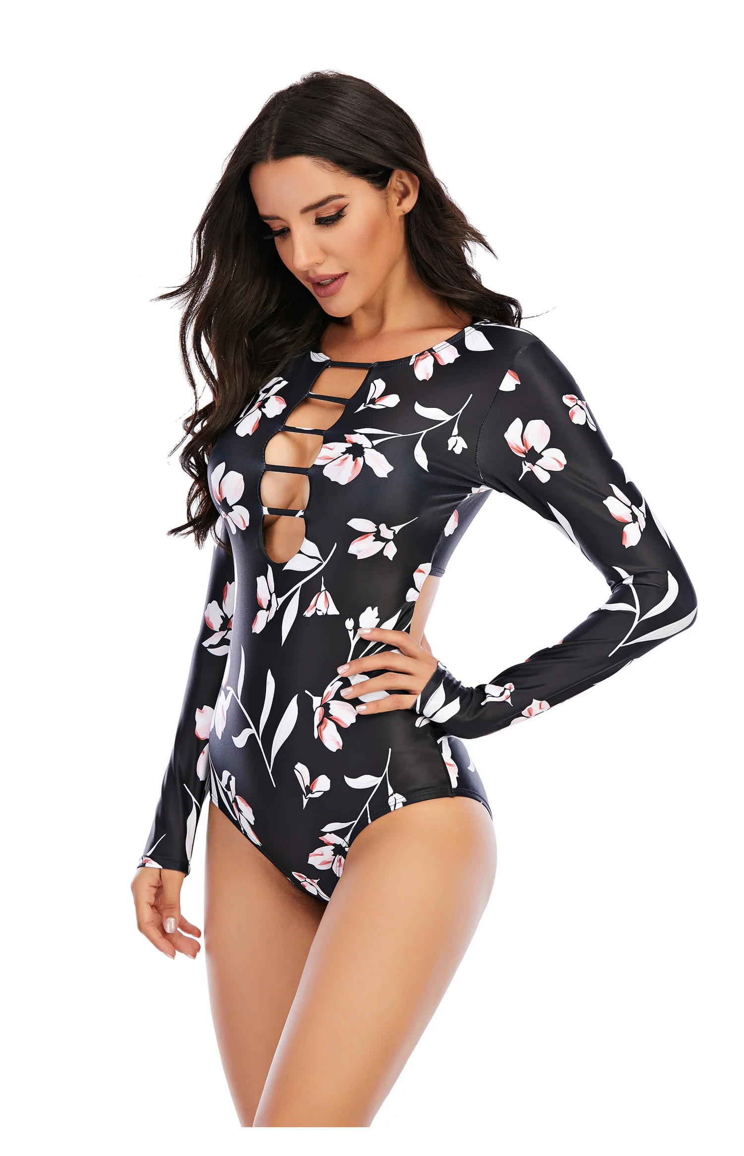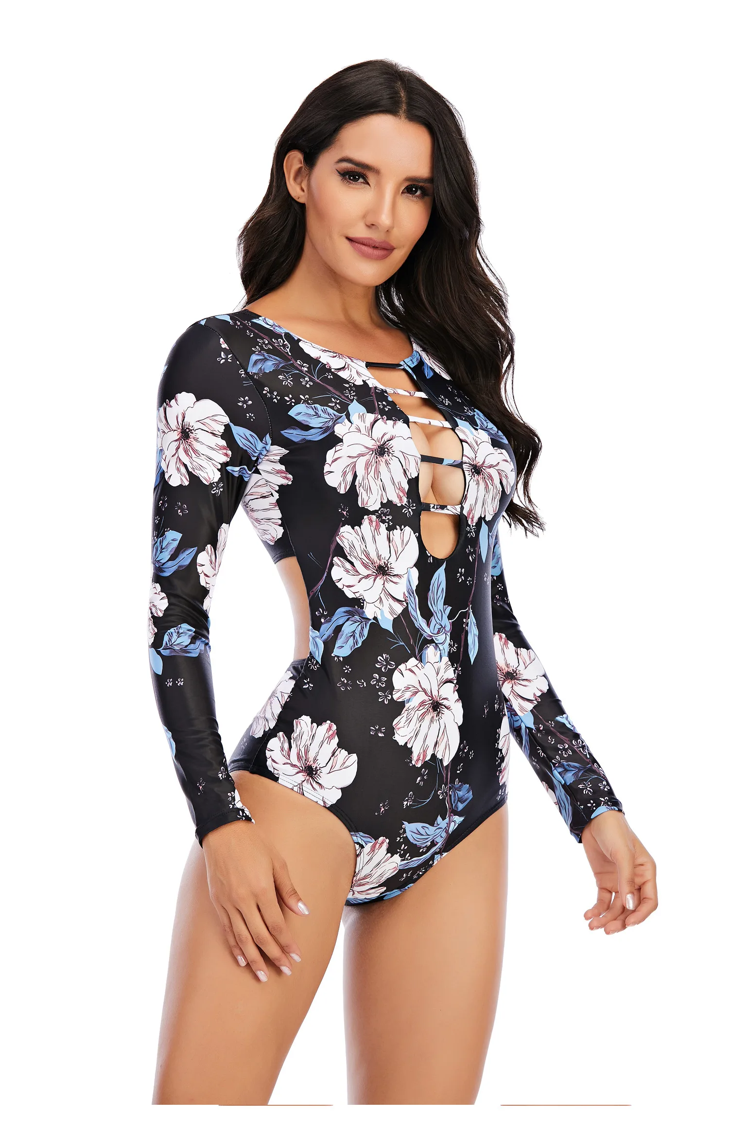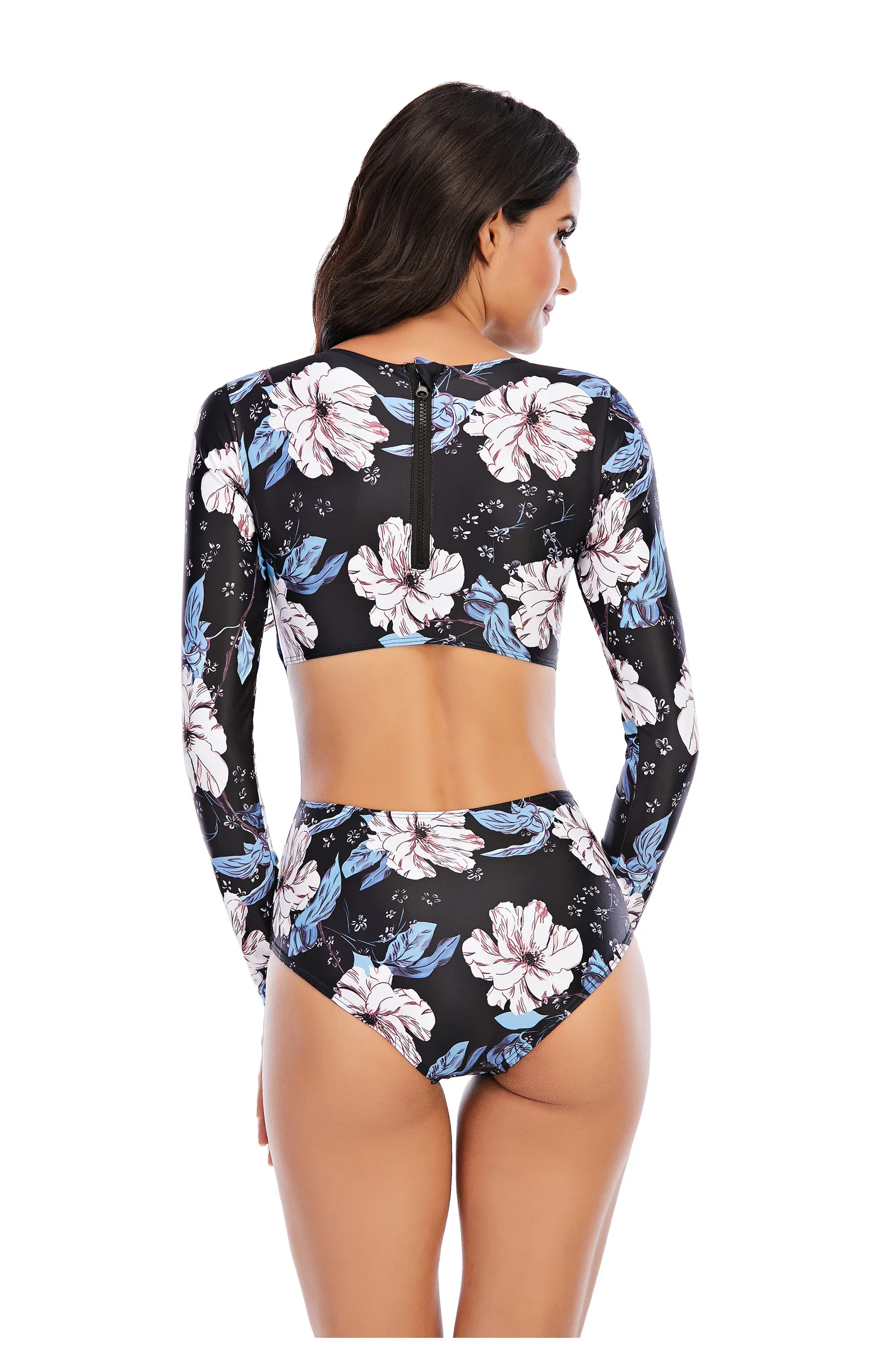 Новинка Рашгард для дайвинга, Женский солнцезащитный купальник с длинным рукавом и УФ-защитой, купальник на молнии, костюм для серфинга с принтом, купальный костюм с рашгардами