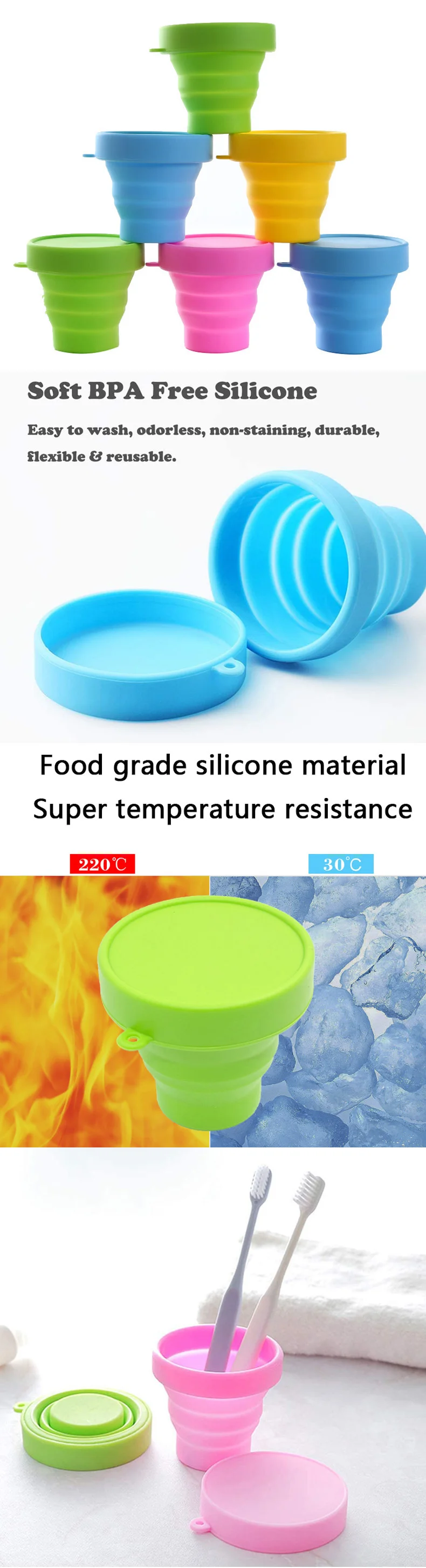 Складная чашка 170 мл BPA бесплатная пищевая водная чашка дорожная Складная силиконовая чашка Выдвижная цветная портативная Питьевая кофейная чашка