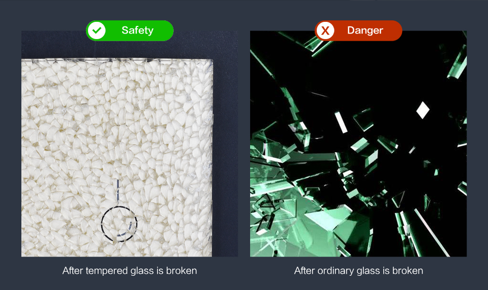 Хрустальное закаленное стекло, разбитое вовремя, не оставляет следов стекла, безопасная защита