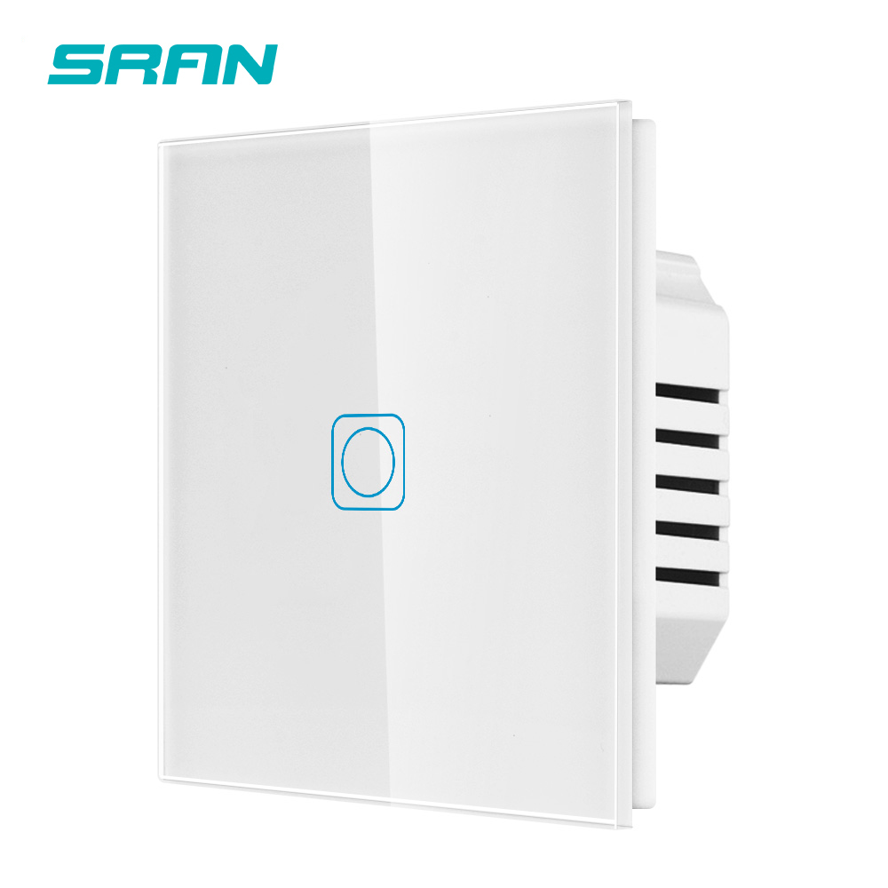 Роскошный настенный сенсорный выключатель SRAN, светодиодный выключатель по стандарту ЕС 220 В, переключатель питания, серое прозрачное стекло, 1 комплект, 1-позиционный выключатель 82*82