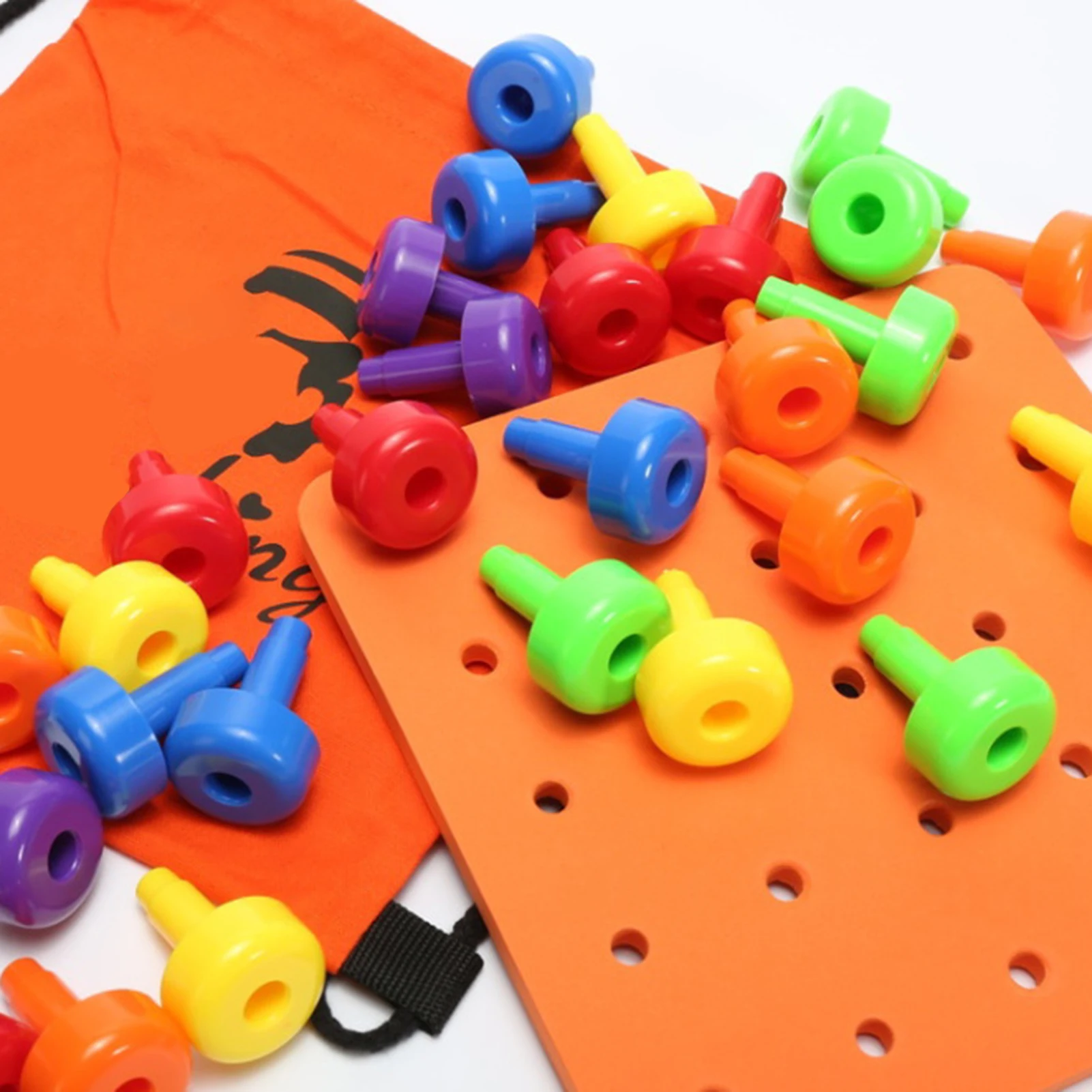 Набор колышков для укладки включает в себя 30 колышков, 6 разных цветов и одну доску, что позволяет вашему дошкольнику разработать любой вид узоров, комбинируя различные цвета, во время обучения и подсчета цветов и количества в процессе.