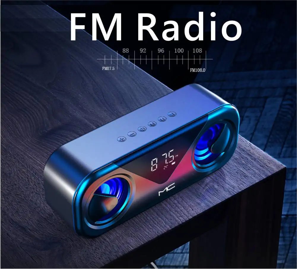 Беспроводная bluetooth Колонка наружная Портативная колонка с сабвуфером музыкальные настольные часы цифровой будильник с температурой fm-радио