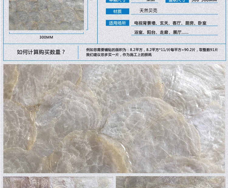 Материал:Чехол для губ SCapizРазмер чипа: около диаметра 50 ммРазмер листа: 300x300 мм1 партия: =1 квадратный метр =11 квадратных футов =11 плитокТолщина: 2 ммПодкладка: сеткаДисплей продукта: