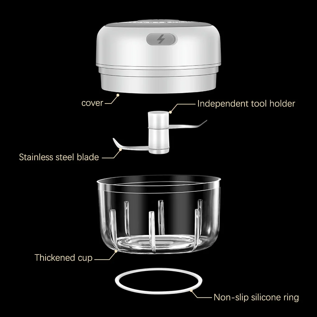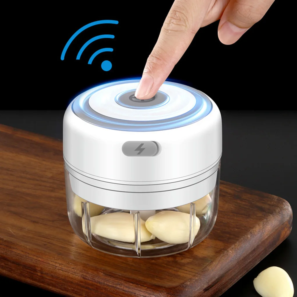 Garlic grinder just needs press the button on the top to automatically stir, get rid of the trouble of hand pulling.