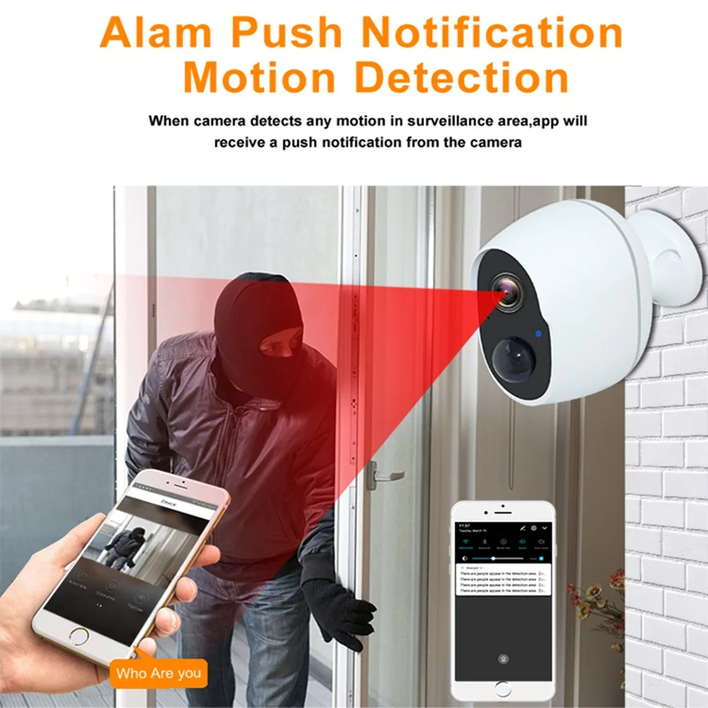 Стандарт режима: Встроенная перезаряжаемая батарея, без tf-карты 16G. Описание: WI-FI: AW-NB197SM, WI-FI 2,4 ГГц, IEEE802.11b/g/n; Радиус действия PIR: 10 метров; Хранение sd-карт: Поддержка макс. 128 г; Светодиодный: 8 шт. 850nm IR светодиодный, 10 метров IR Distance' Видео: tf-карта (10 секунд каждый раз, можно установить), поддерживает мобильный телефон, локальную запись, запись устройства, запись облака (30 дней бесплатно); Обнаружение движения: Обнаружение движения PIR, высокая чувствительность/Средняя/низкая Регулировка уровня; Разрешение: 1920*1080; Перспектива: Диагональ 135 ° Микрофон: Поддержка, расстояние захвата звука> 3 метра; Питание от аккумулятора: 5000 мА · ч перезаряжаемые литиевые батареи; Режим ожидания: 6 месяцев; Уровень водонепроницаемости: IP66; Мобильное приложение: Onecam; Функция Интеллектуальное обнаружение: самостоятельный интеллектуальный алгоритм обнаружения для эффективного снижения ложных срабатываний; Ультра низкое энергопотребление: Интеллектуальное энергосбережение, длительное время работы в режиме ожидания, 5000ма оригинальный аккумулятор 18650, нормальное использование 8-12 месяцев; Простая распределительная Сеть: конфигурация устройства всего за 2 шага; Быстрый ответ: просыпайтесь, чтобы увидеть изображения до 3 секунд, нажмите сообщение в течение 1 секунды Дистанционная передача: открытие пространства до 100 м, с препятствиями до 30 м высокое качество изображения; Супер пуш-массаж: первая в отрасли компания все еще может получать новости, когда приложение выходит из фона, решая болевые точки на рынке; Другие: двусторонний голосовой Интерком, видео-запрос sd-карты, облачный запрос записи, обмен устройствами, передача устройств, онлайн-обновление прошивки устройства