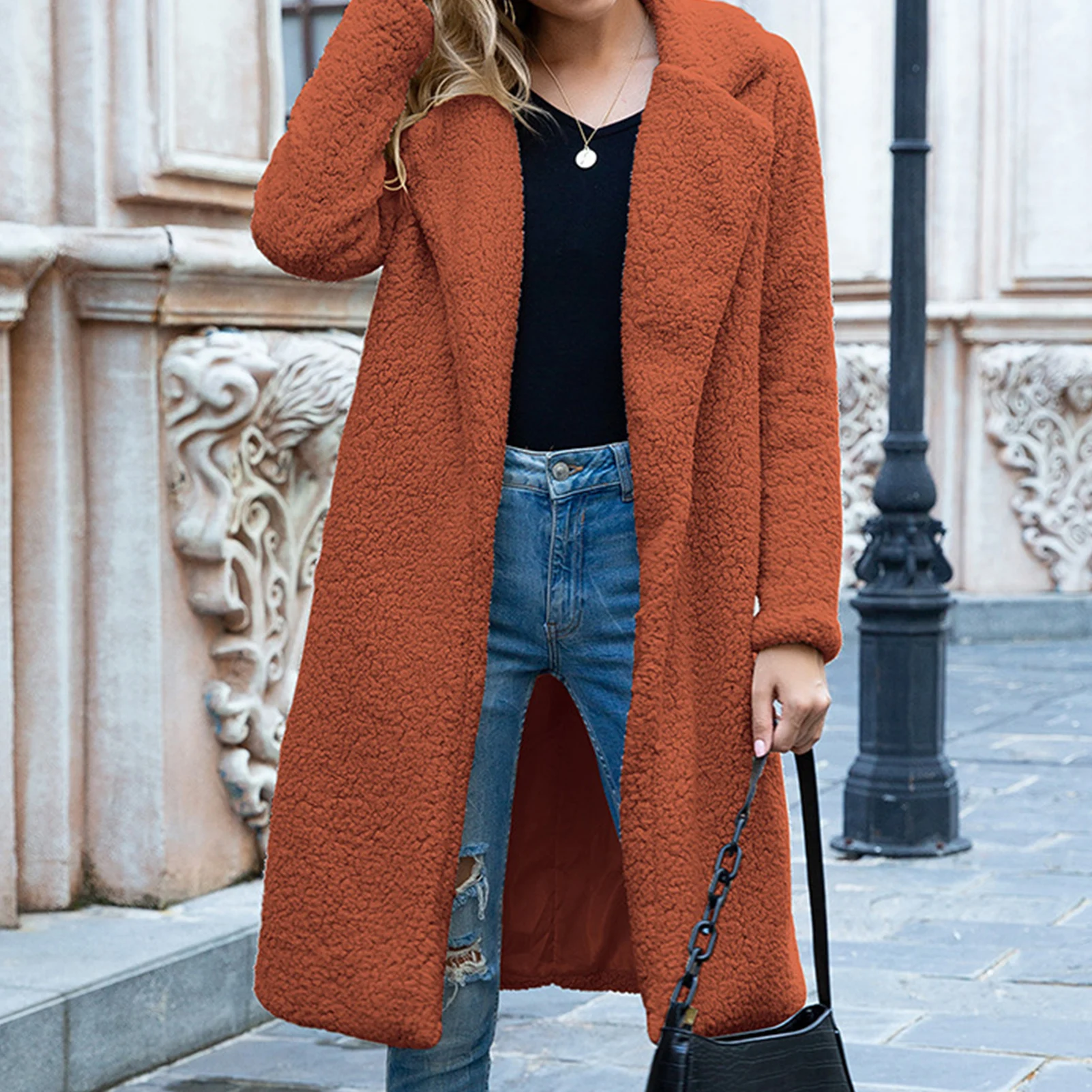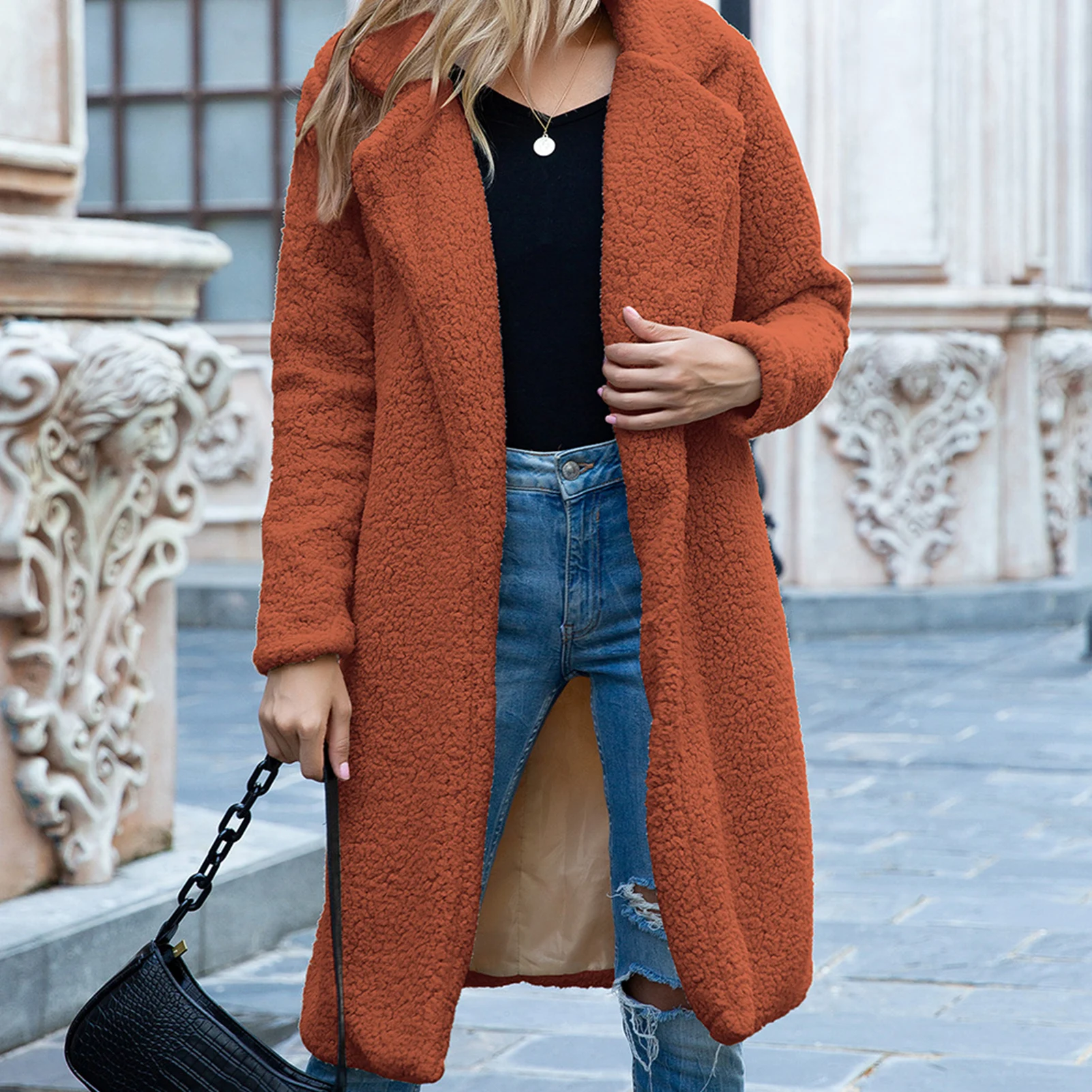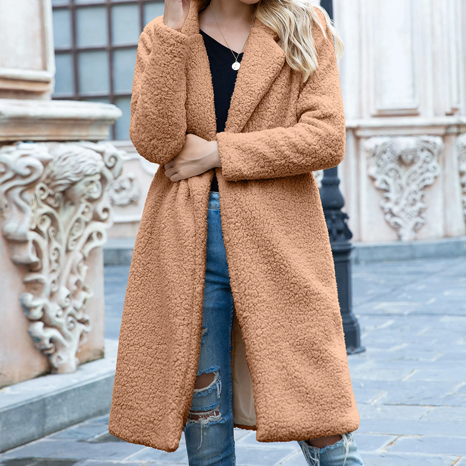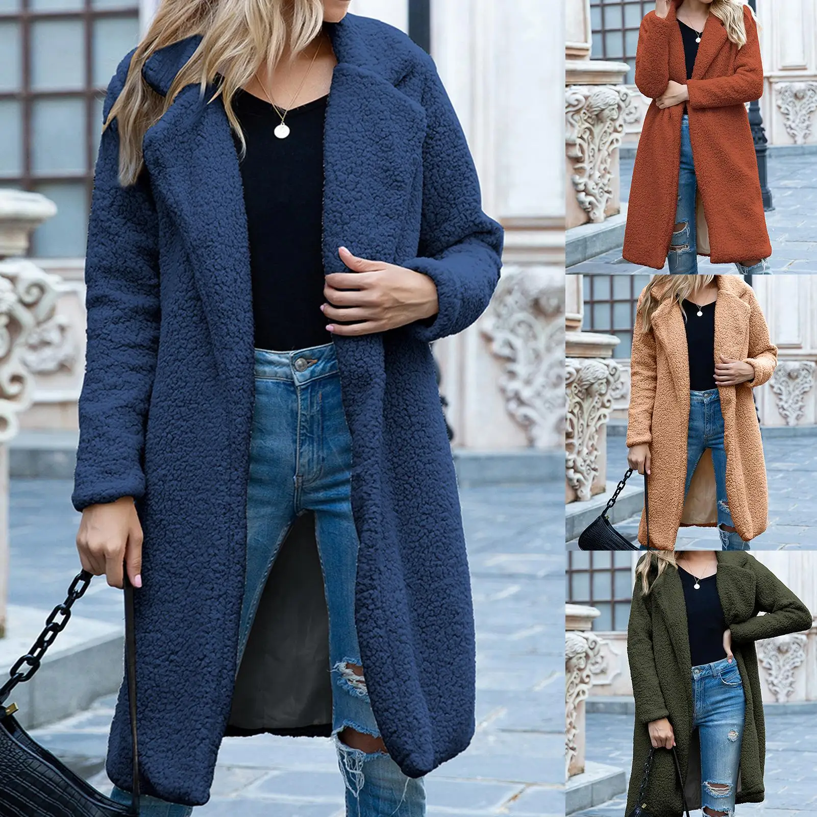 Особенности: длинное пальто, однотонное, Открытое Спереди